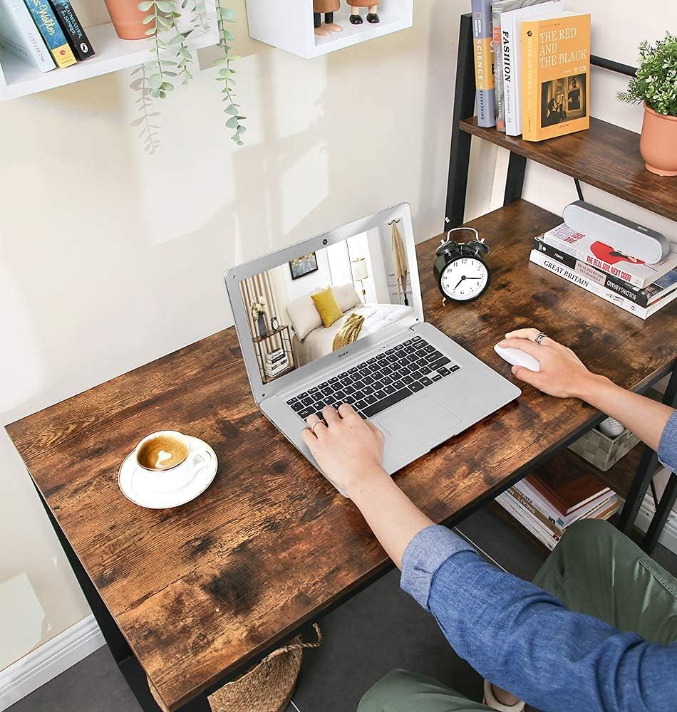 VASAGLE Birou cu raft lateral, montare stanga sau dreapta, industrial, 56x120x120 cm, maro Household NewTrend