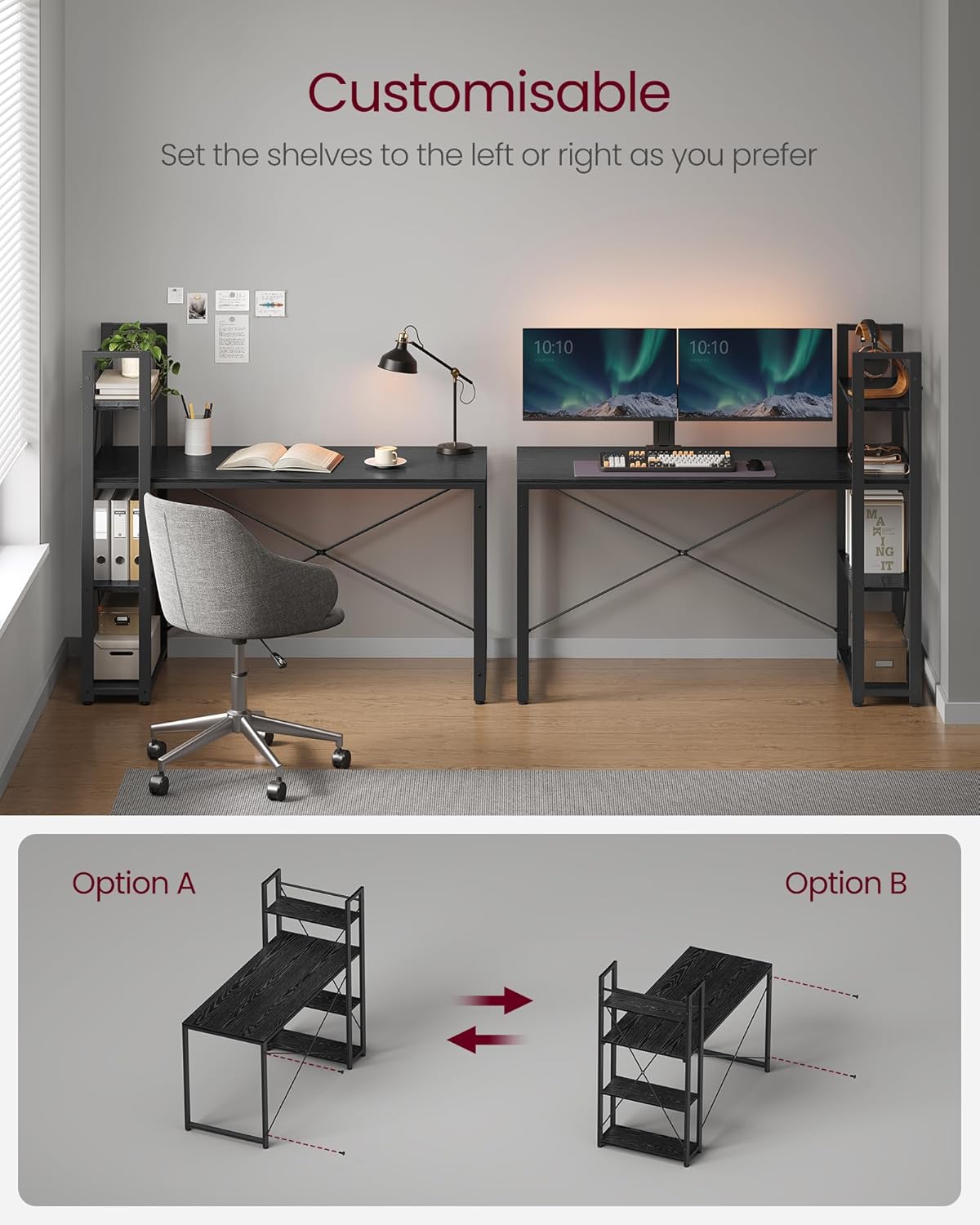 Descriere VASAGLE Birou raft lateral, montare stanga