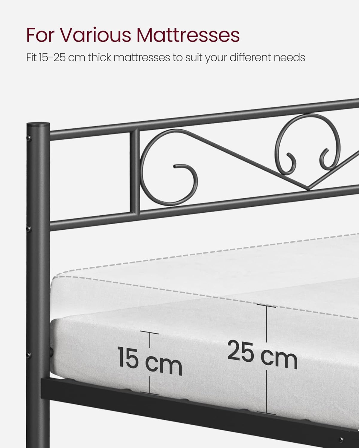 VASAGLE Cadru metalic de pat dublu, 140x190 cm, negru Household NewTrend