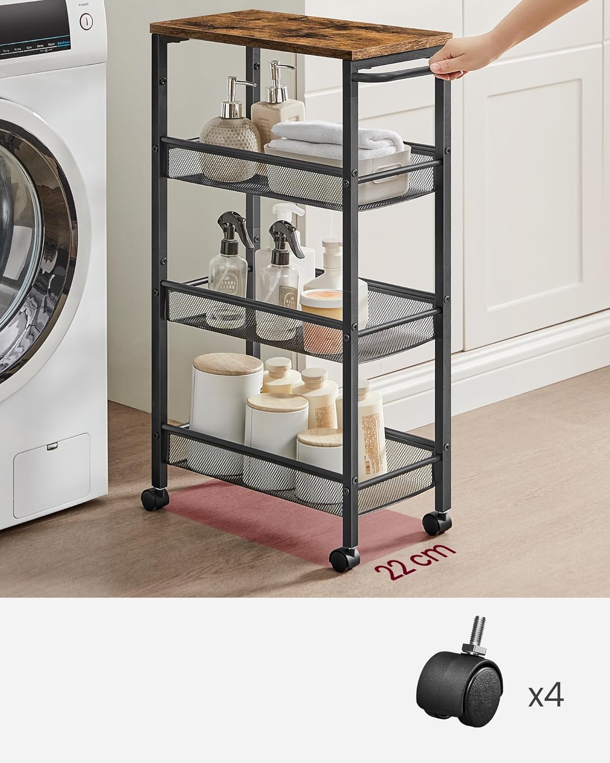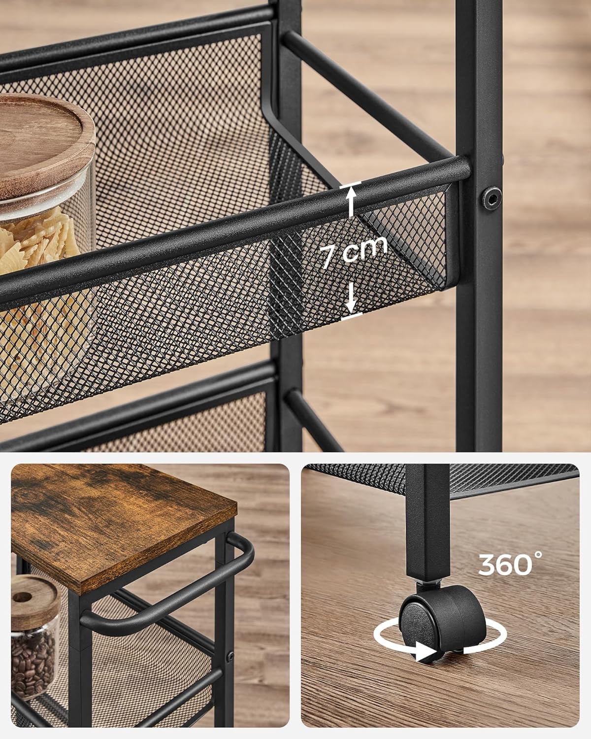 Descriere VASAGLE Carucior bucatarie ingust roti, 4