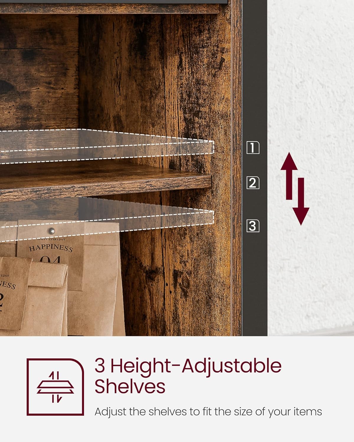 VASAGLE Comoda pentru living sau bucatarie, cu 2 usi glisante, rafturi reglabile, stil rustic, 33x100x80cm, maro si negru Household NewTrend