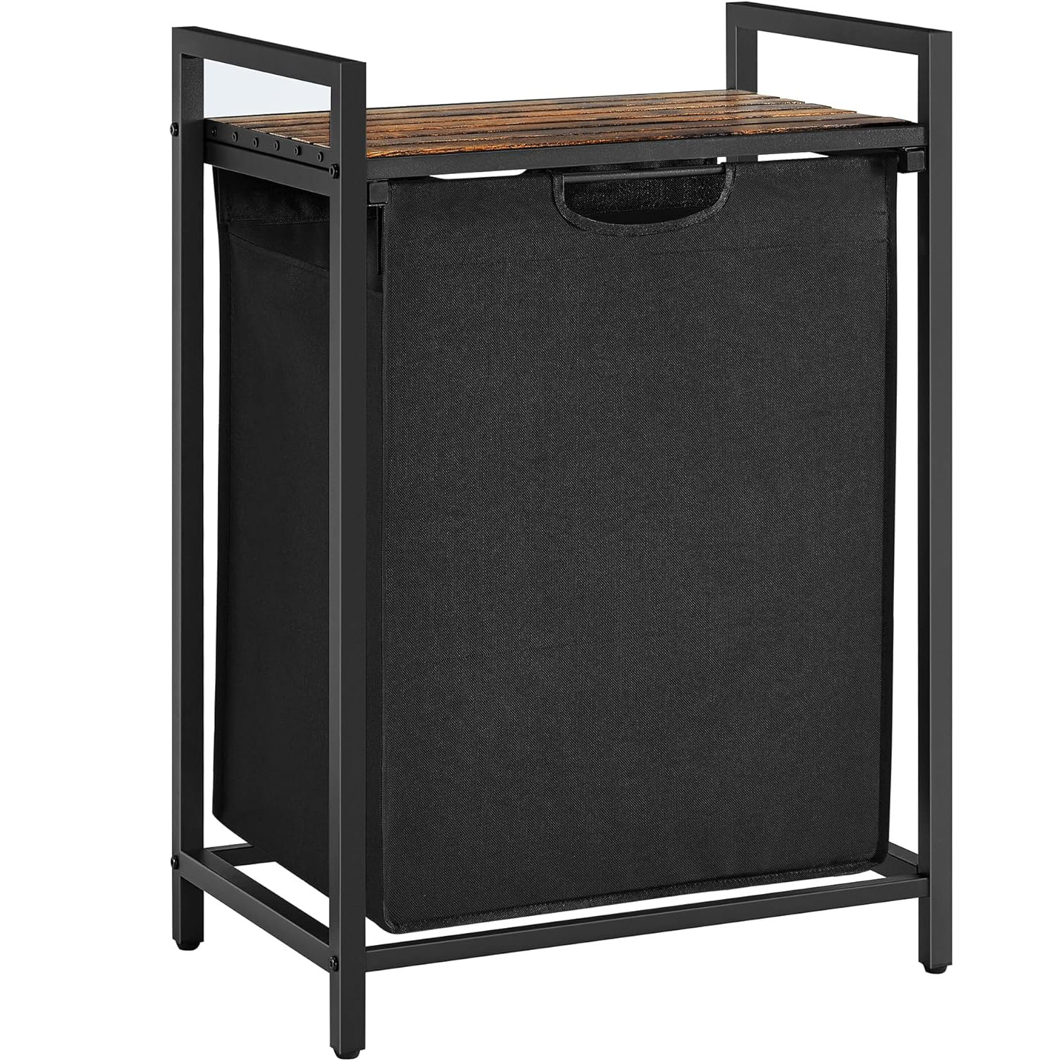 VASAGLE Cos de rufe, sac de rufe detasabil, raft, cadru metalic, 65L, 50x33x72 cm, maro rustic si negru Household NewTrend
