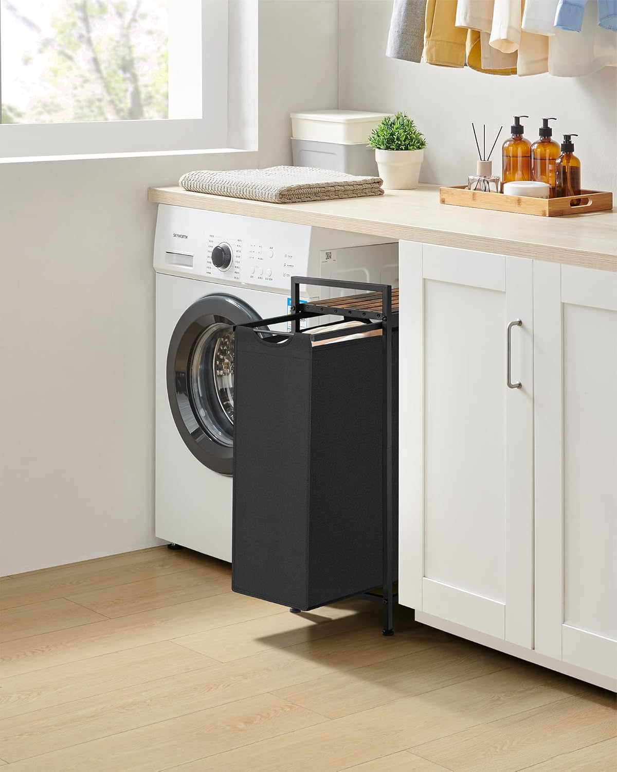 VASAGLE Cos rufe pentru spatii inguste, 47L cu sac textil detasabil, raft superior si cadru metalic, 42x22x75 cm, maro rustic Household NewTrend
