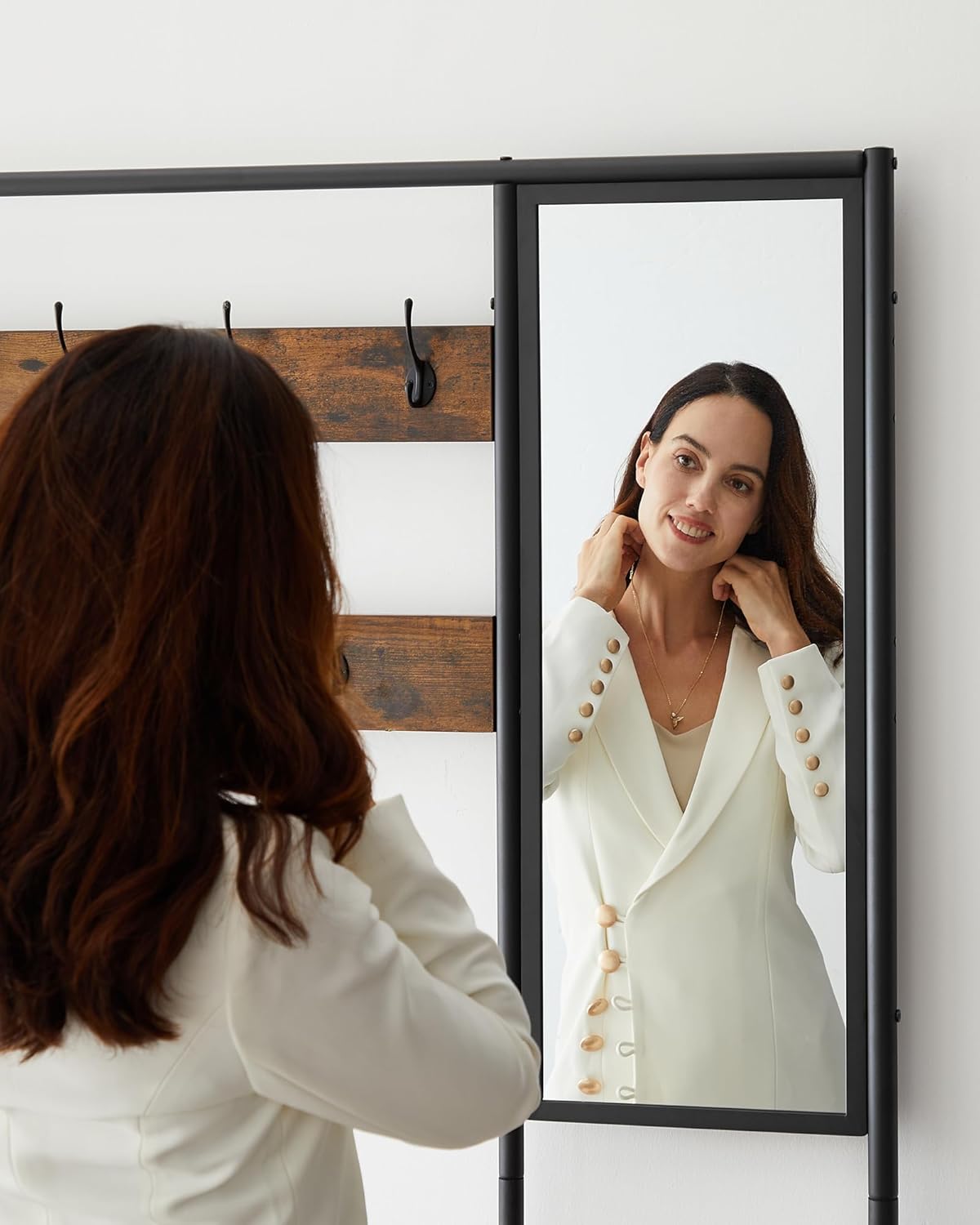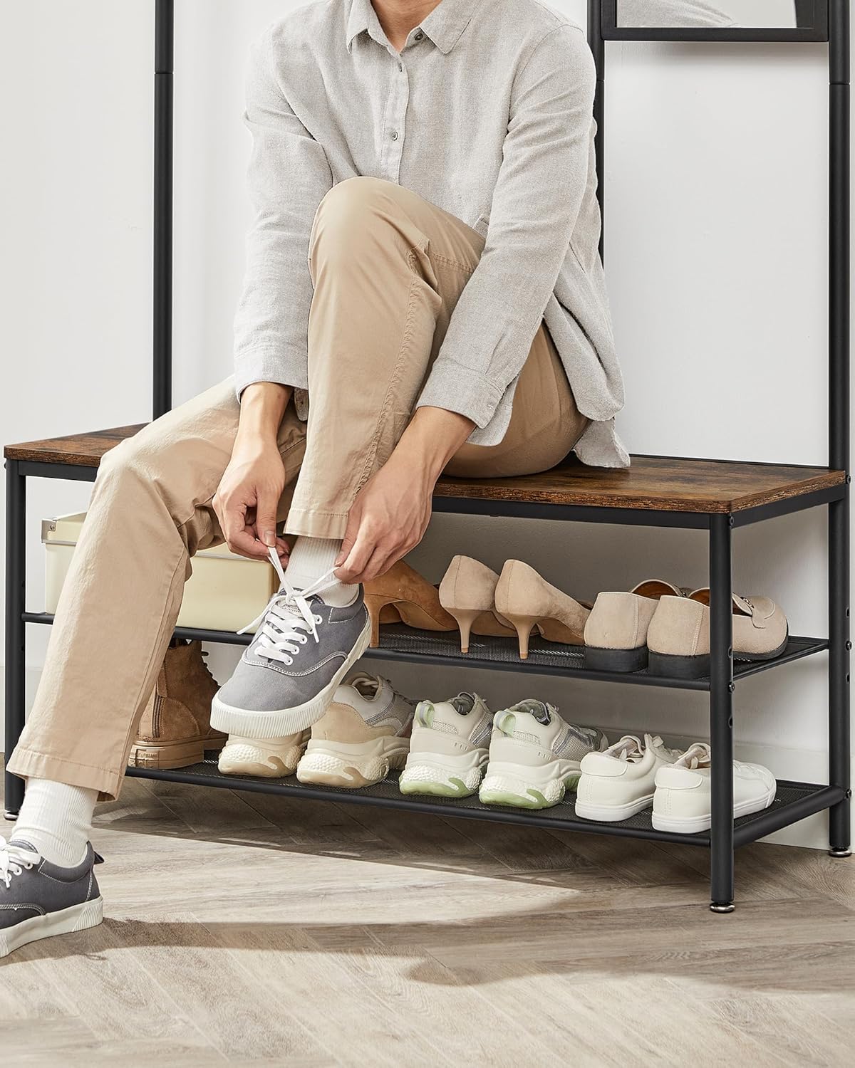 VASAGLE Cuier cu rafturi depozitare pantofi si oglinda, industrial, 35x98x180 cm, maro rustic si negru Household NewTrend