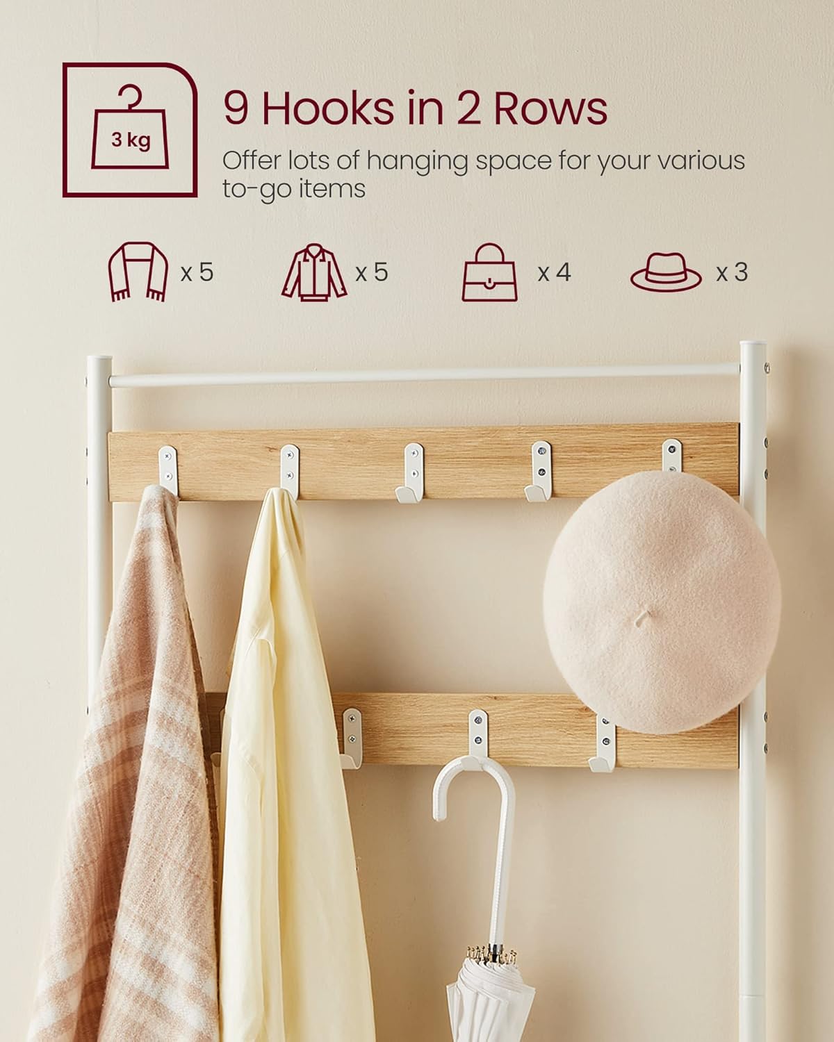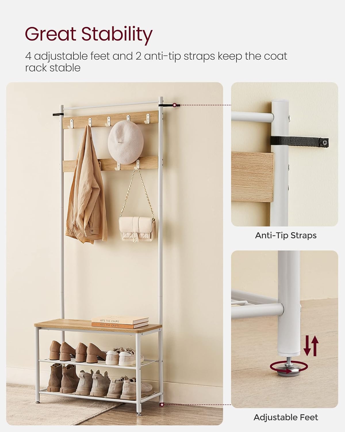 Descriere VASAGLE Cuier hol 3 in 1