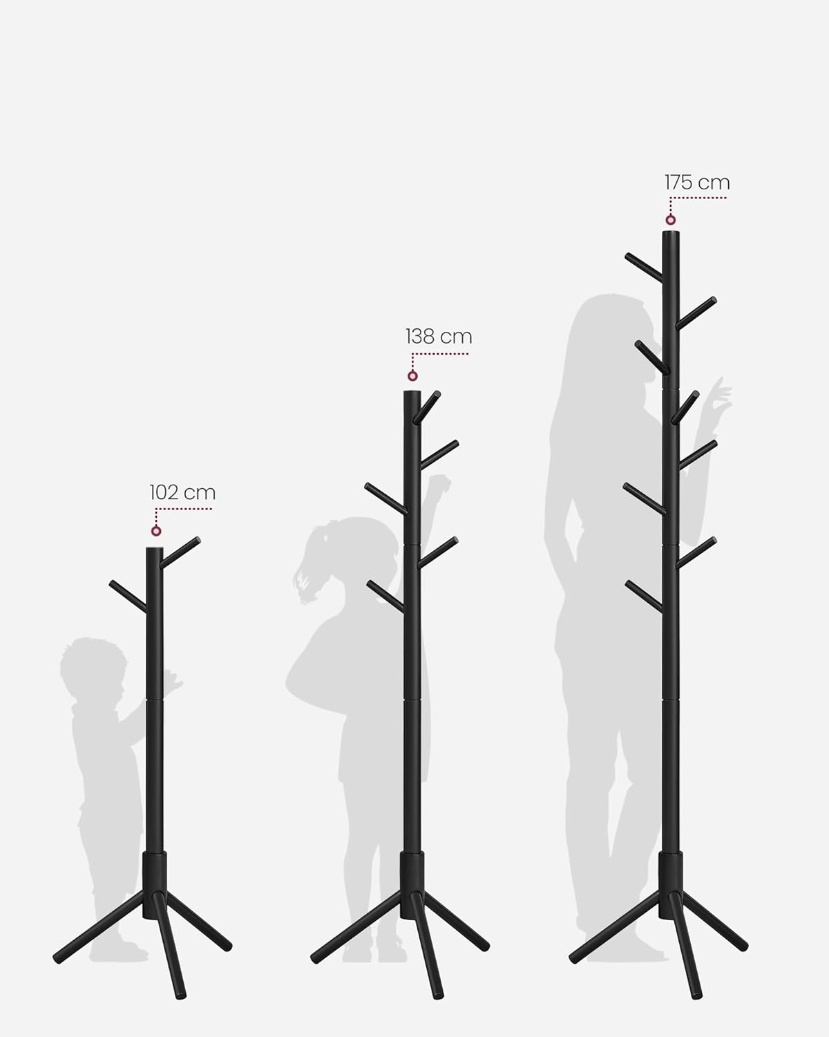 VASAGLE Cuier lemn masiv 47x47x175 cm, 8 carlige si inaltime reglabila, baza triunghiulara, negru Household NewTrend