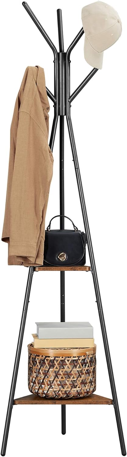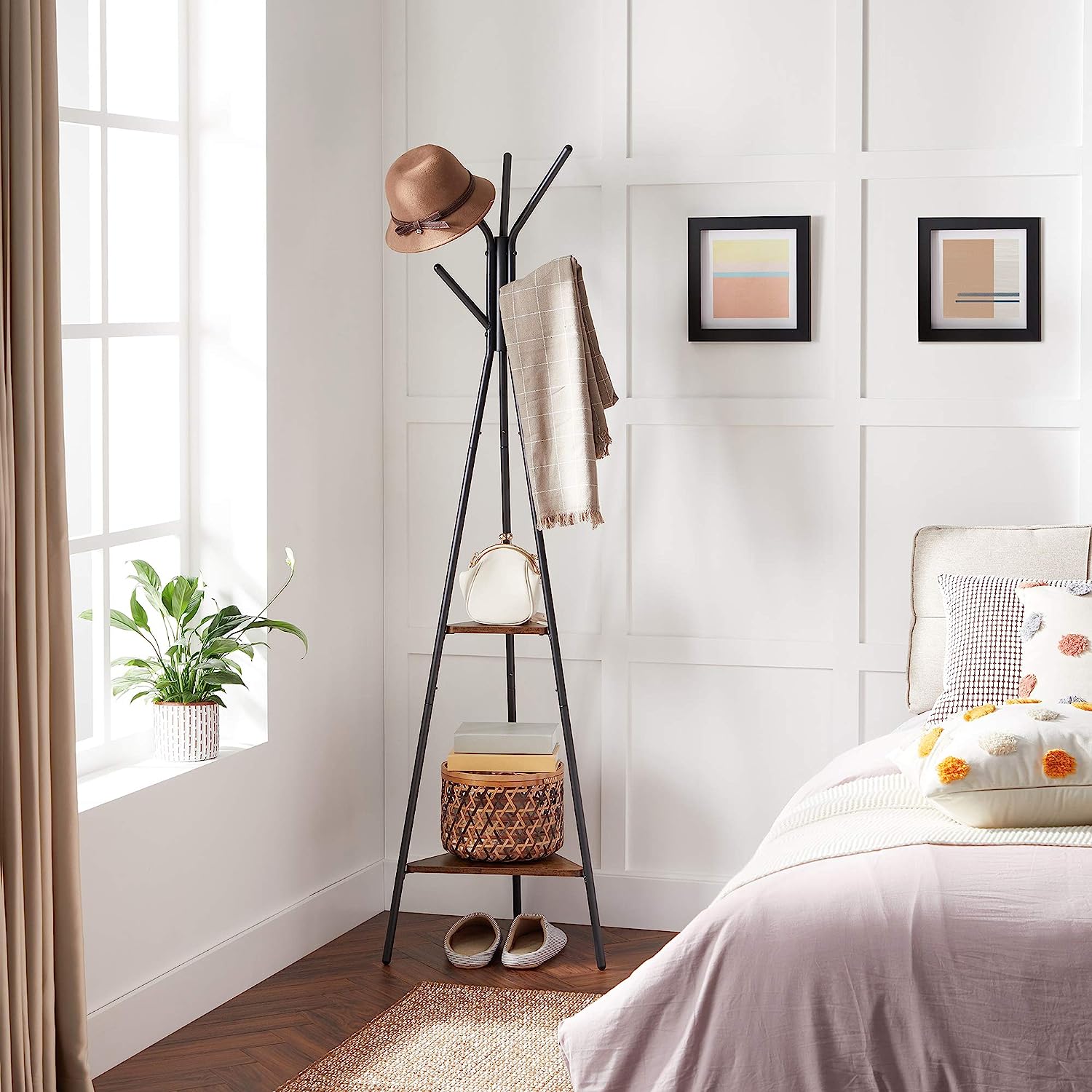 VASAGLE Cuier metalic, cu 2 rafturi MDF, inaltime 179cm, stil industrial, maro rustic si negru Household NewTrend
