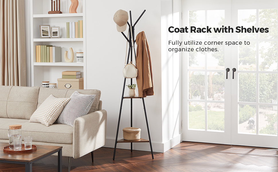 Descriere VASAGLE Cuier metalic, 2 rafturi MDF,