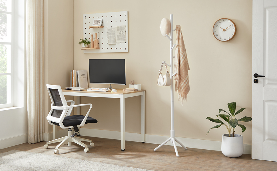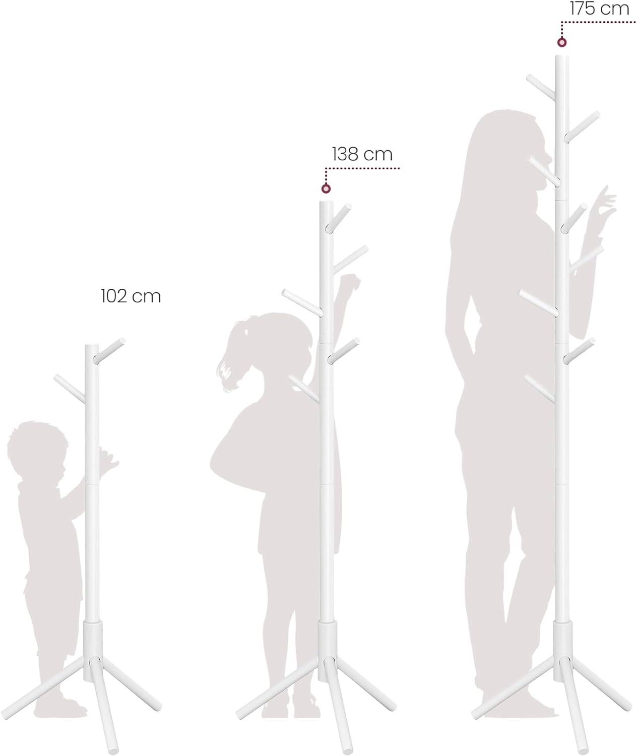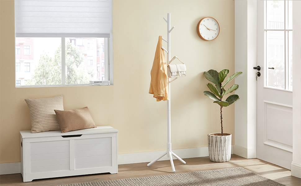 VASAGLE Cuier pentru haine, din lemn masiv, tip pom, cu 8 carlige, 175cm, alb Household NewTrend