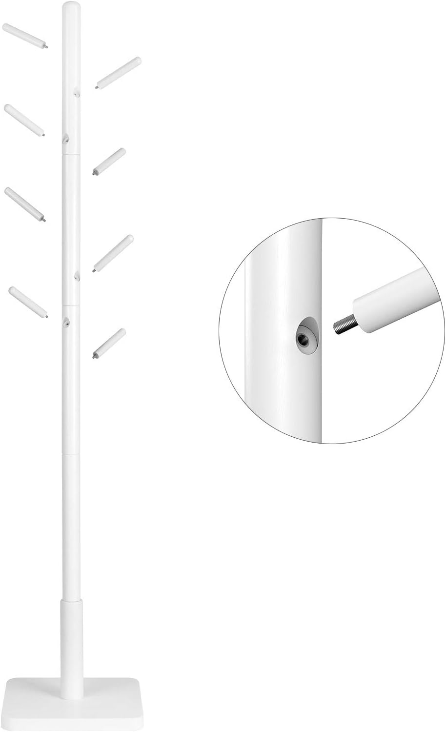 VASAGLE Cuier pentru haine, din lemn masiv, tip pom, cu 8 carlige, baza patrata, 175cm, alb Household NewTrend