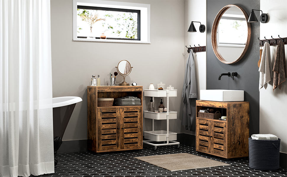 VASAGLE Dulap baie baza lavoar, cu 2 usi, 2 rafturi, 60x30x60 cm, maro rustic Household NewTrend
