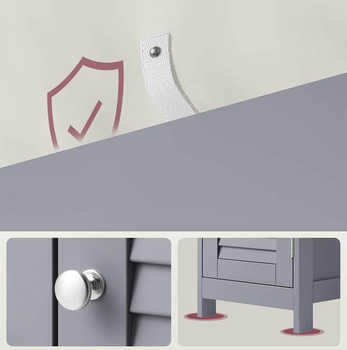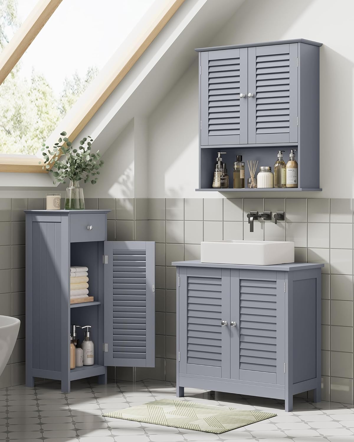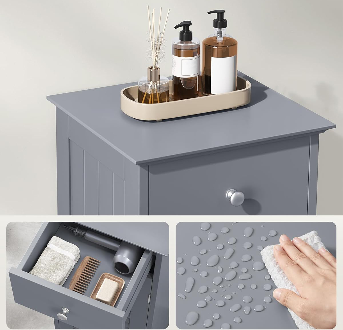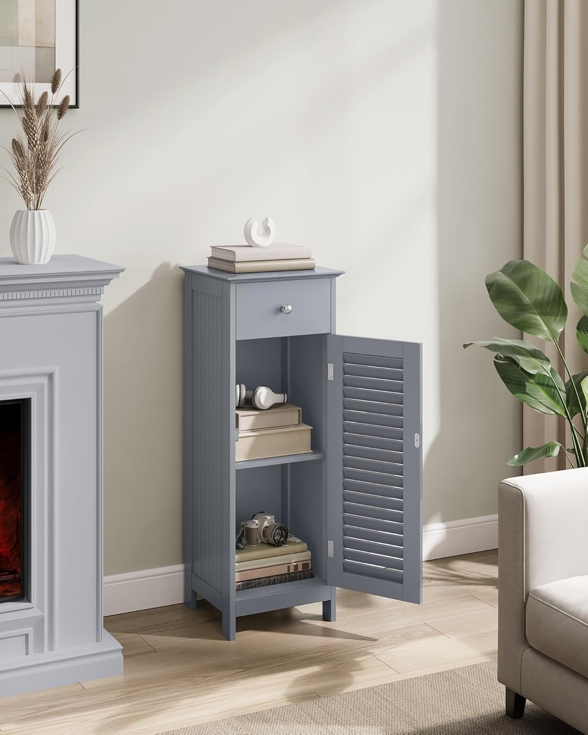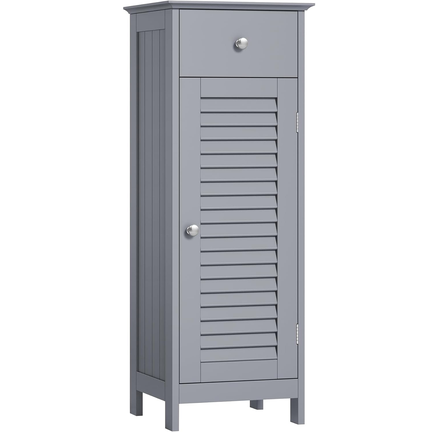 VASAGLE Dulap de depozitare de podea pentru baie, din lemn cu sertar, usa cu lamele, 32x30x87cm, gri Household NewTrend
