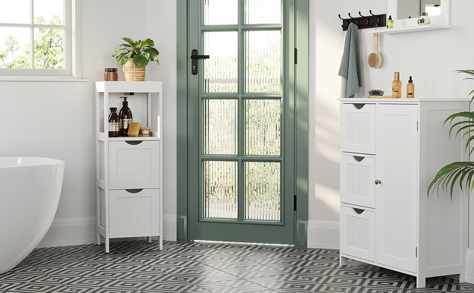 VASAGLE Dulap de podea pentru baie, multifunctional, 2 sertare, 30x30x89cm, alb Household NewTrend