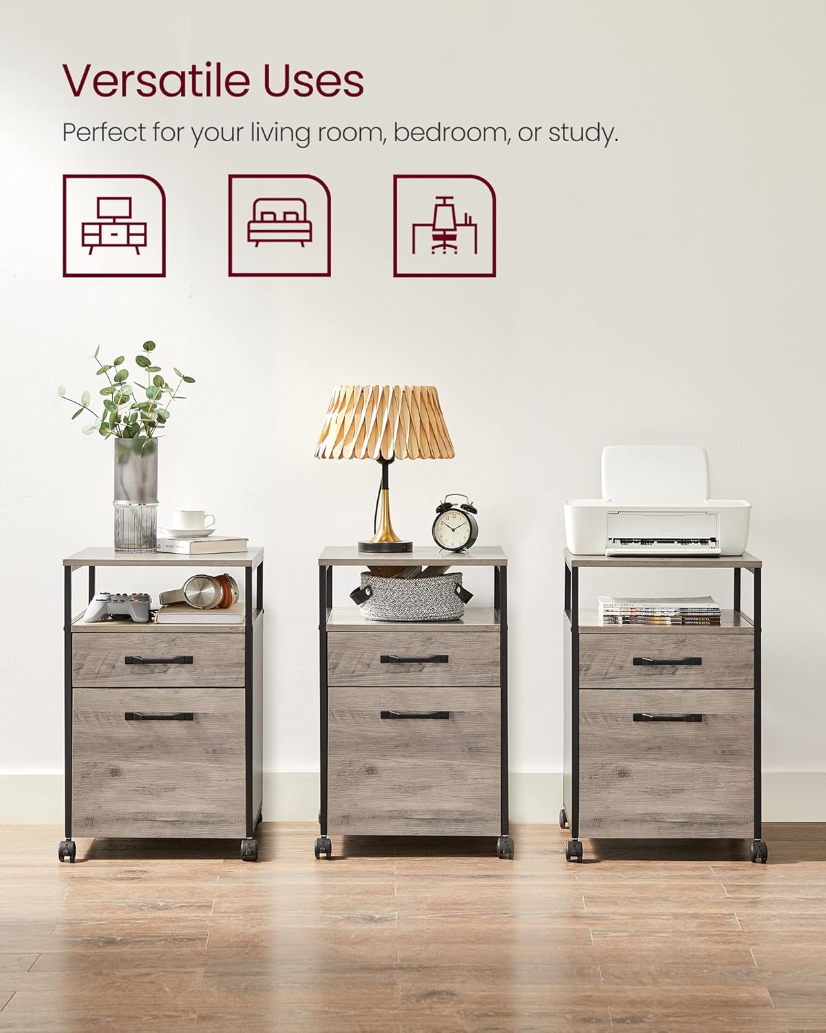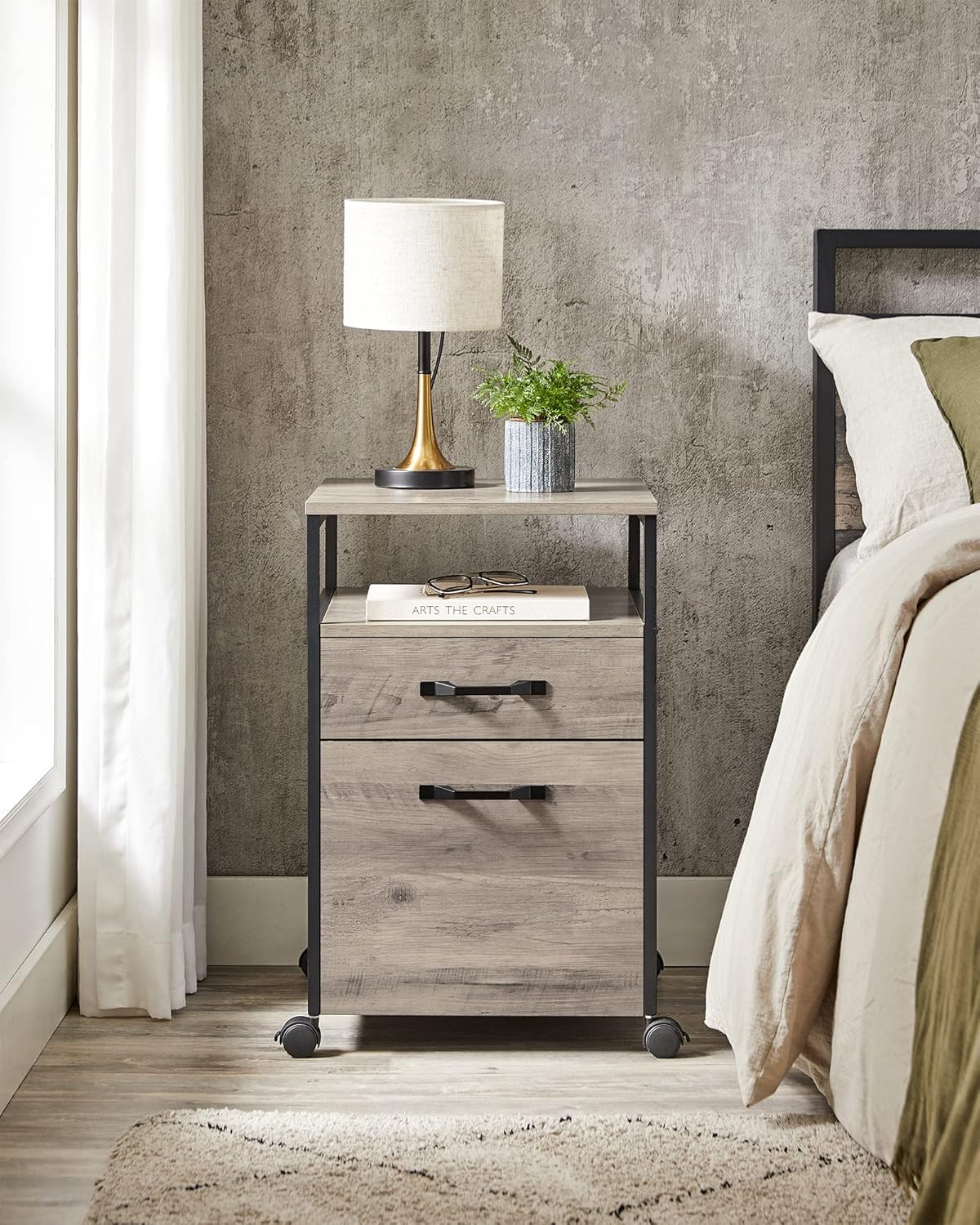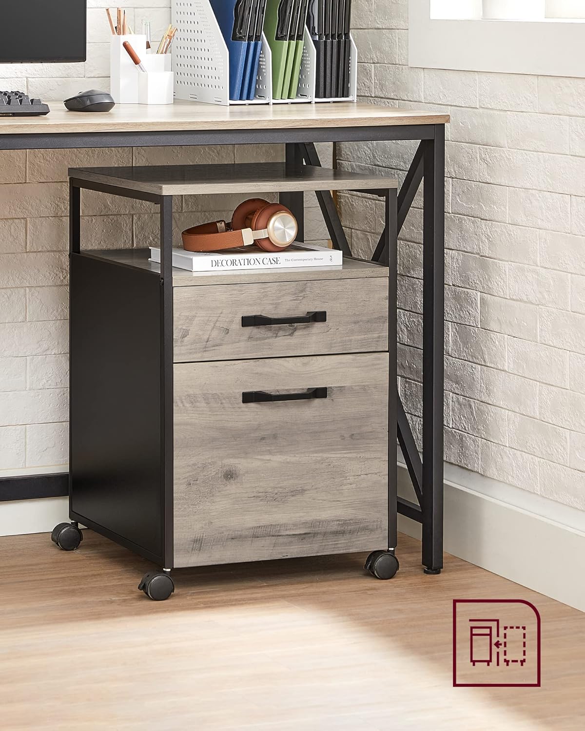 VASAGLE Dulap mobil 42x44x69 cm, cu 2 sertare si roti cu frana, compartiment deschis si suport dosare, PAL si otel, gri si negru Household NewTrend