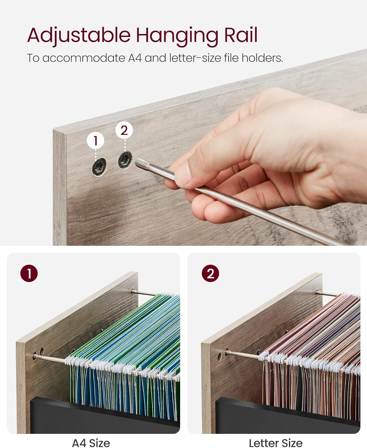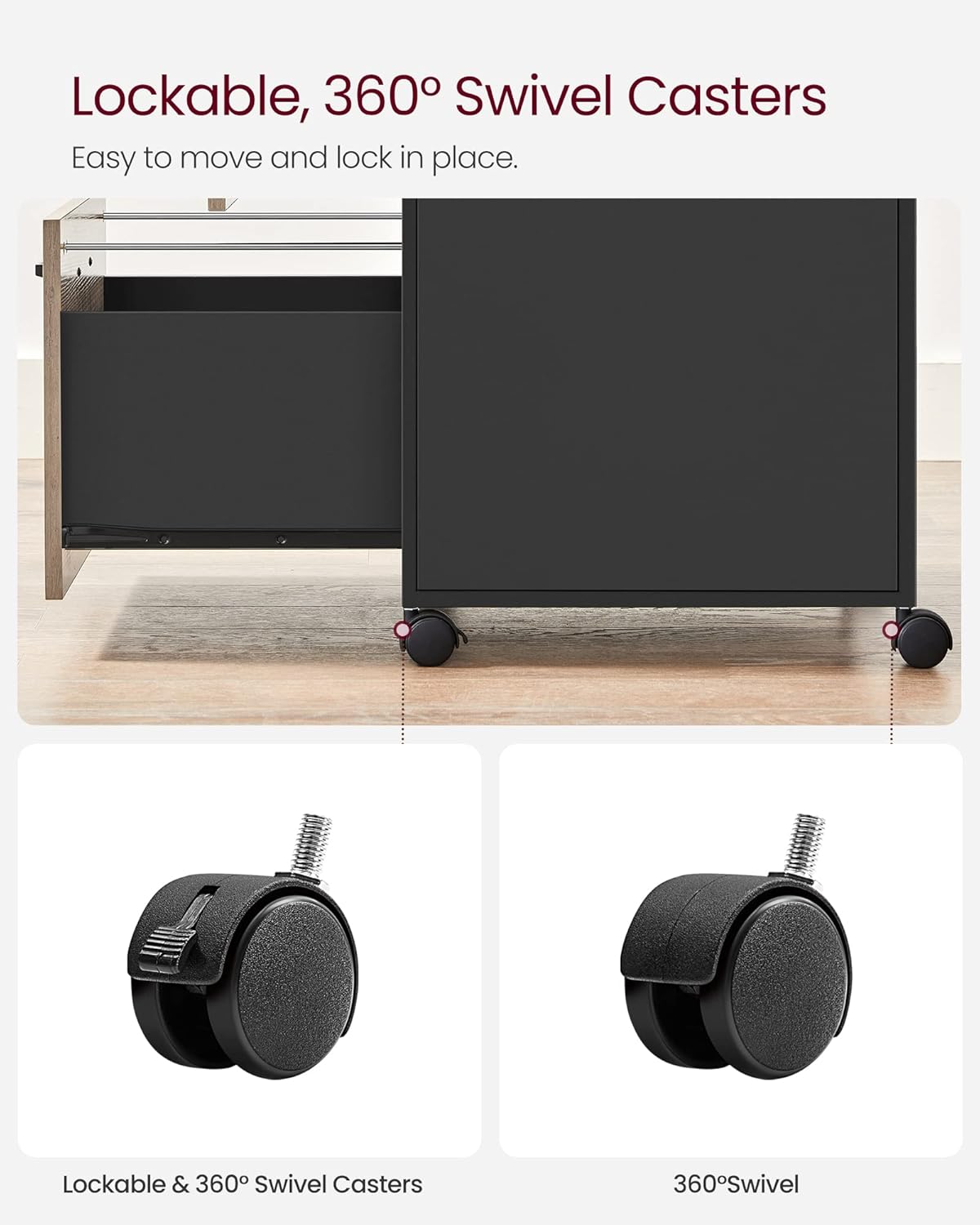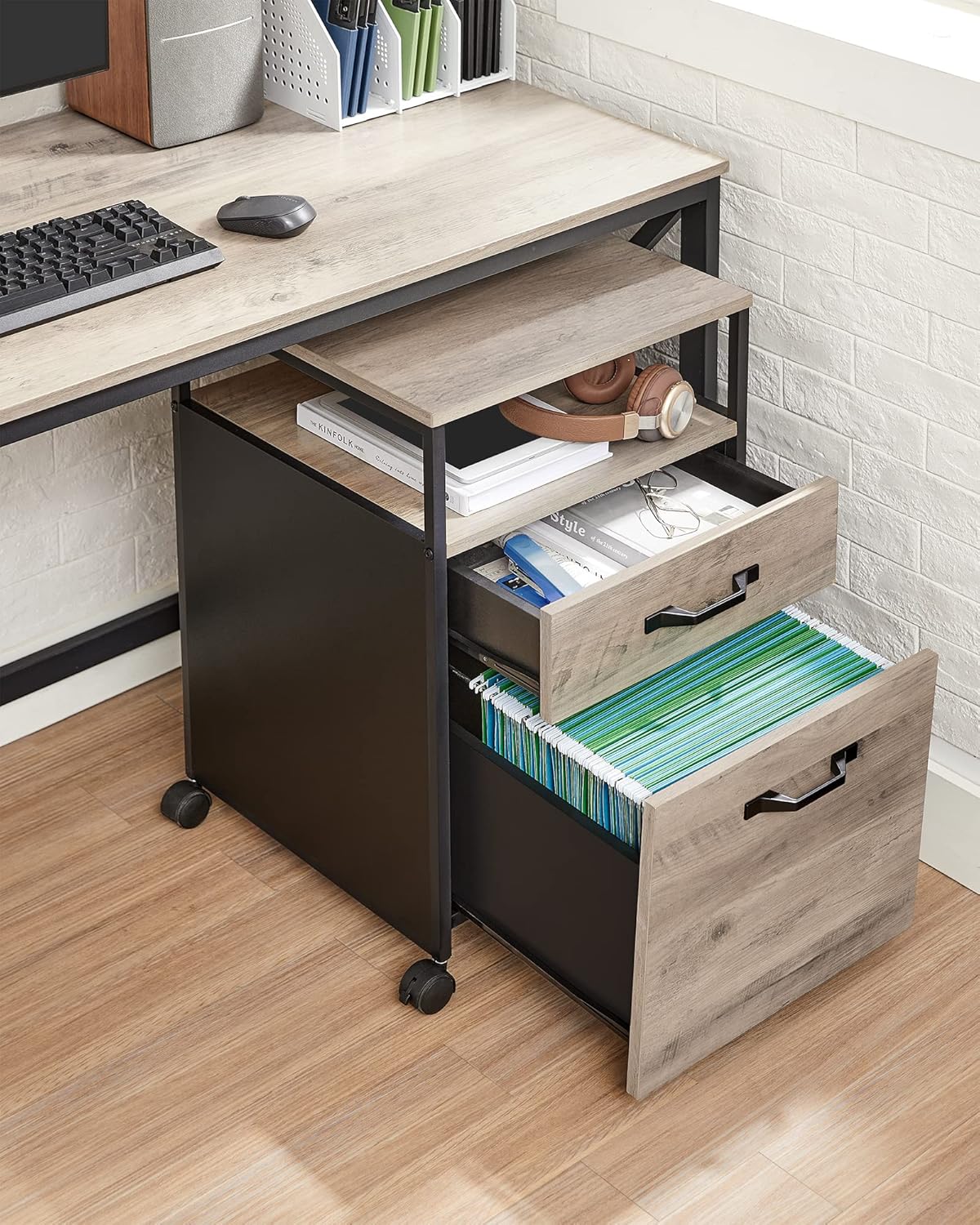 VASAGLE Dulap mobil 42x44x69 cm, cu 2 sertare si roti cu frana, compartiment deschis si suport dosare, PAL si otel, gri si negru Household NewTrend