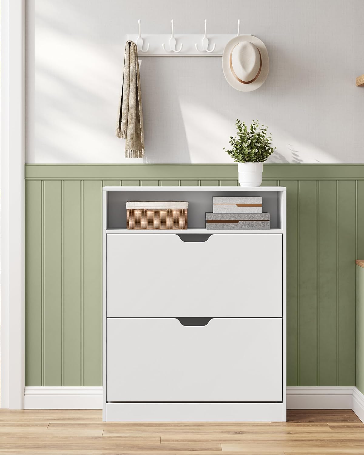 VASAGLE Dulap pantofi 80x24x102 cm, cu 2 usi rabatabile, separator reglabil si raft superior, PAL alb mat Household NewTrend