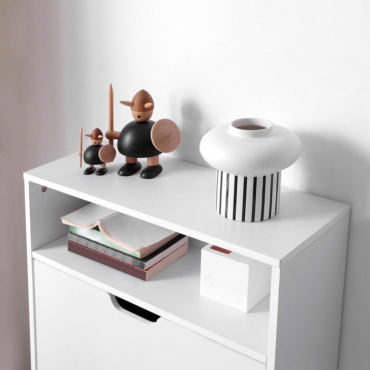 Descrierea produsului Nu este intotdeauna usor sa depozitezi pantofii. In sfarsit, iata solutia pentru iubitorii de pantofi care se simt invadati de pantofii lor tot timpul si care nu stiu unde sa ii depoziteze.Potrivit pentru toate tipurile de pantofi: Cu o dimensiune de 60 x 24 x 102 cm, acest pantofar spatios cu 2 clape este potrivit pentru pantofi cu toc, cizme etc. Are 2 compartimente pentru a va sorta pantofii precum papuci, adidasi, balerini, etc. Fiecare pereche de pantofi isi va gasi locul!Spatiu suplimentar: In comparatie cu modelele conventionale, aceasta unitate are un dulap deschis unde va puteti pastra cheile si scrisorile la indemana si chiar va puteti depozita esarfele, manusile etc.Timpul inseamna bani: Nimeni nu vrea sa petreaca o zi intreaga asambland o piesa de mobilier. Cu instructiuni ilustrate si piese numerotate, asamblarea se face in cel mai scurt timp. Caracteristici: - Culoare: alb.- Material: placi aglomerate PAL, furnir melaminat- Dimensiuni: 60 x 24 x 102 cm (L x l x i)- Greutate: 17 kg- Capacitate maxima de incarcare statica: 19 kgContinutul cutiei:- 1 x suport pentru pantofi.- 1 x kit de montare.- 1 x manual de utilizare Precautii VASAGLE: - La asamblare, urmati cu strictete instructiunile.- Din motive de siguranta, este imperativ sa fixati produsul pe perete cu dispozitivul anti-basculare inclus.- Copiilor le este interzis sa se joace si sa se catere pe produs.- Evitati expunerea cu lichide pentru o perioada prea lunga.- Evitati contactul cu obiecte ascutite sau taioase. Spatios si versatil Acest suport pentru pantofi poate tine 8-12 perechi de pantofi! In plus, cu spatiile sale de depozitare deschise, va puteti pune in scena plantele, fotografiile sau amintirile intr-o organizare cu adevarat unica Adaptabil si economisitor de spatiu Cu separatoare detasabile si reglabile, acest dulap pentru pantofi se potriveste multor tipuri de pantofi. Reglati-l, comutati-l si optimizati spatiul in functie de preferintele dvs. Increzator in durata sa de viata Fabricat din panouri de inalta calitate rezistente la fisuri si echipat cu un panou din spate pentru a va proteja pantofii de praf si insecte, acest depozit subtire este un paradis sigur Elegant si sofisticat Acest suport pentru pantofi pentru hol, cu designul sau curat si estetica sa minimalista, este mai mult decat functional. Este o piesa de mobilier care va afirma stilul si imbunatateste decorul casei dvs Asamblare usoara Cu instructiunile noastre ilustrate pas cu pas, am facut asamblarea acestui raft foarte usoara. In doar 30 de minute veti avea o noua piesa de mobilier eleganta si functionala in camera dvs