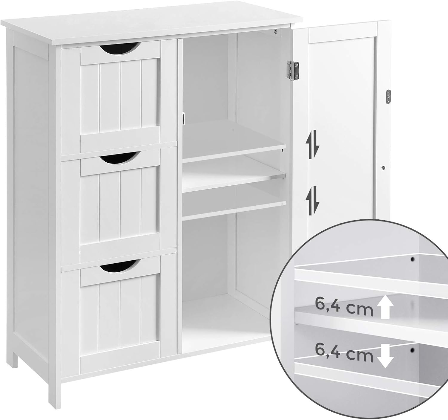 VASAGLE Dulap pentru baie, cu 3 sertare si un raft reglabil cu usa, 60x30x81 cm, alb Household NewTrend