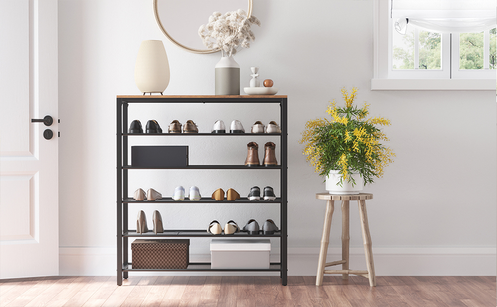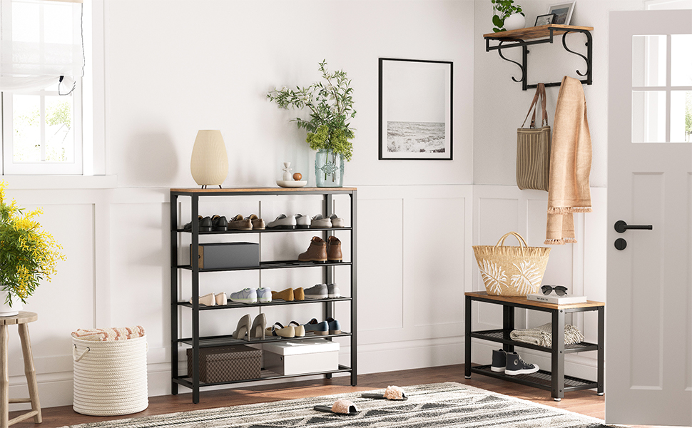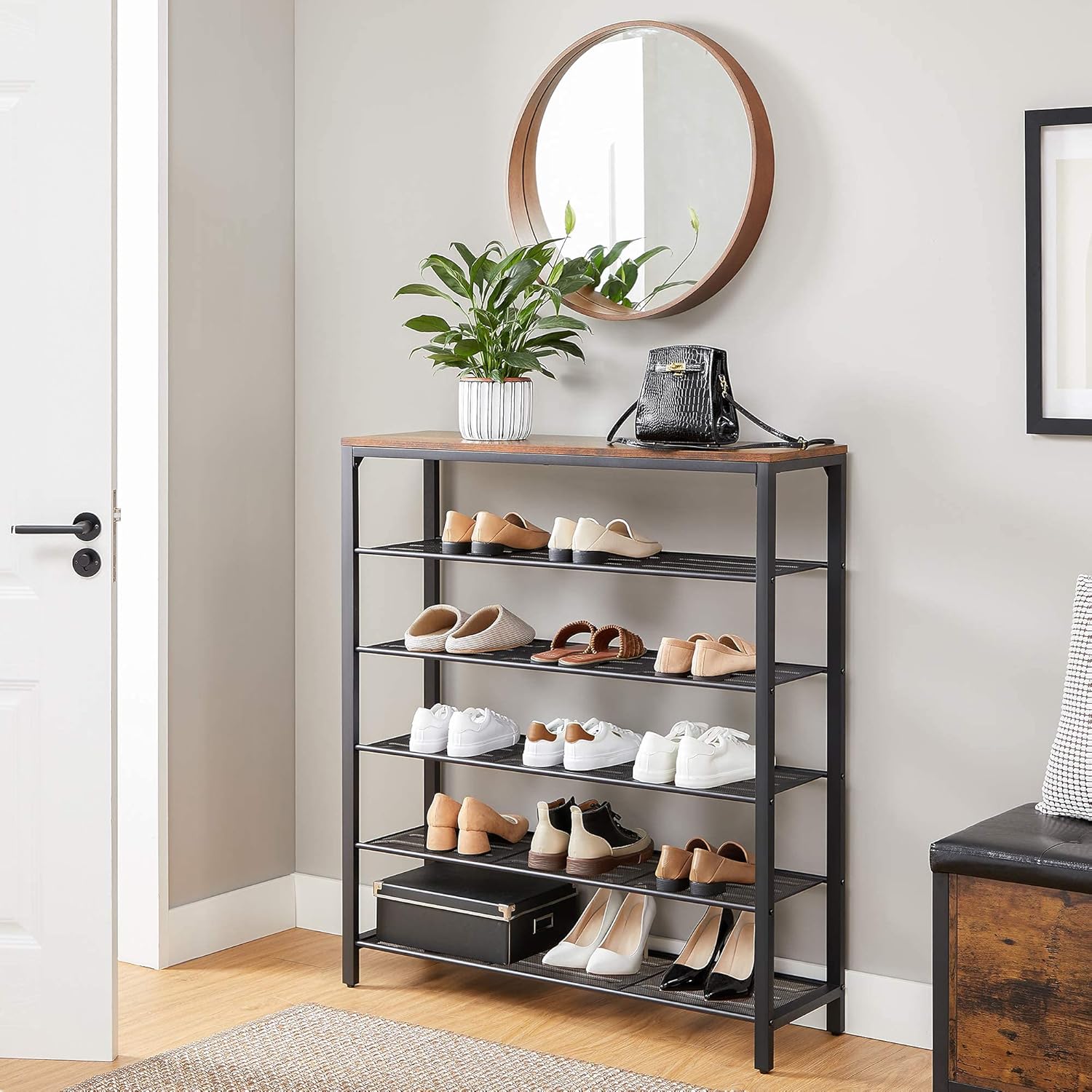 VASAGLE Etajera pantofi cu 5 rafturi si polita superioara, 100x30x110 cm, maro rustic Household NewTrend