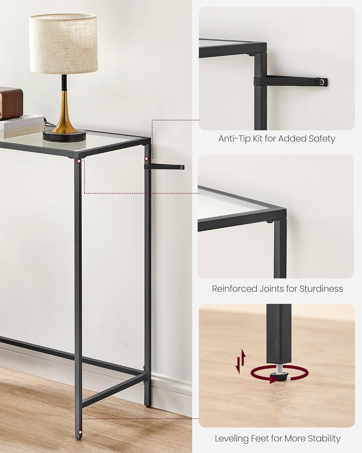 VASAGLE Masa consola 100x20x80 cm, blat sticla securizata si cadru metalic, negru Household NewTrend