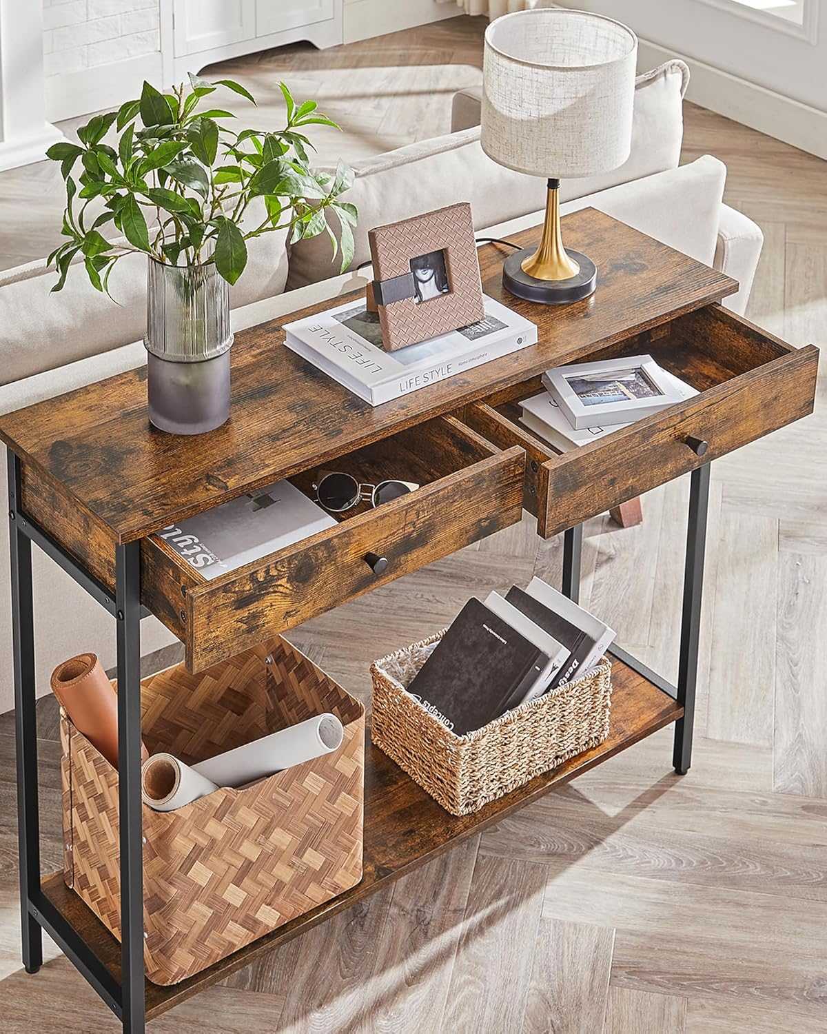 VASAGLE masa consola pentru hol cu 2 sertare, stil industrial, maro rustic