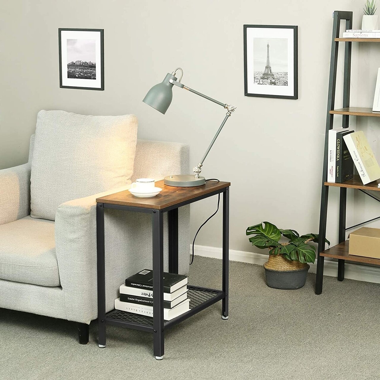 VASAGLE Masa de cafea laterala, cu 2 nivele, cadru din otel, 60x30x60cm, maro rustic Household NewTrend
