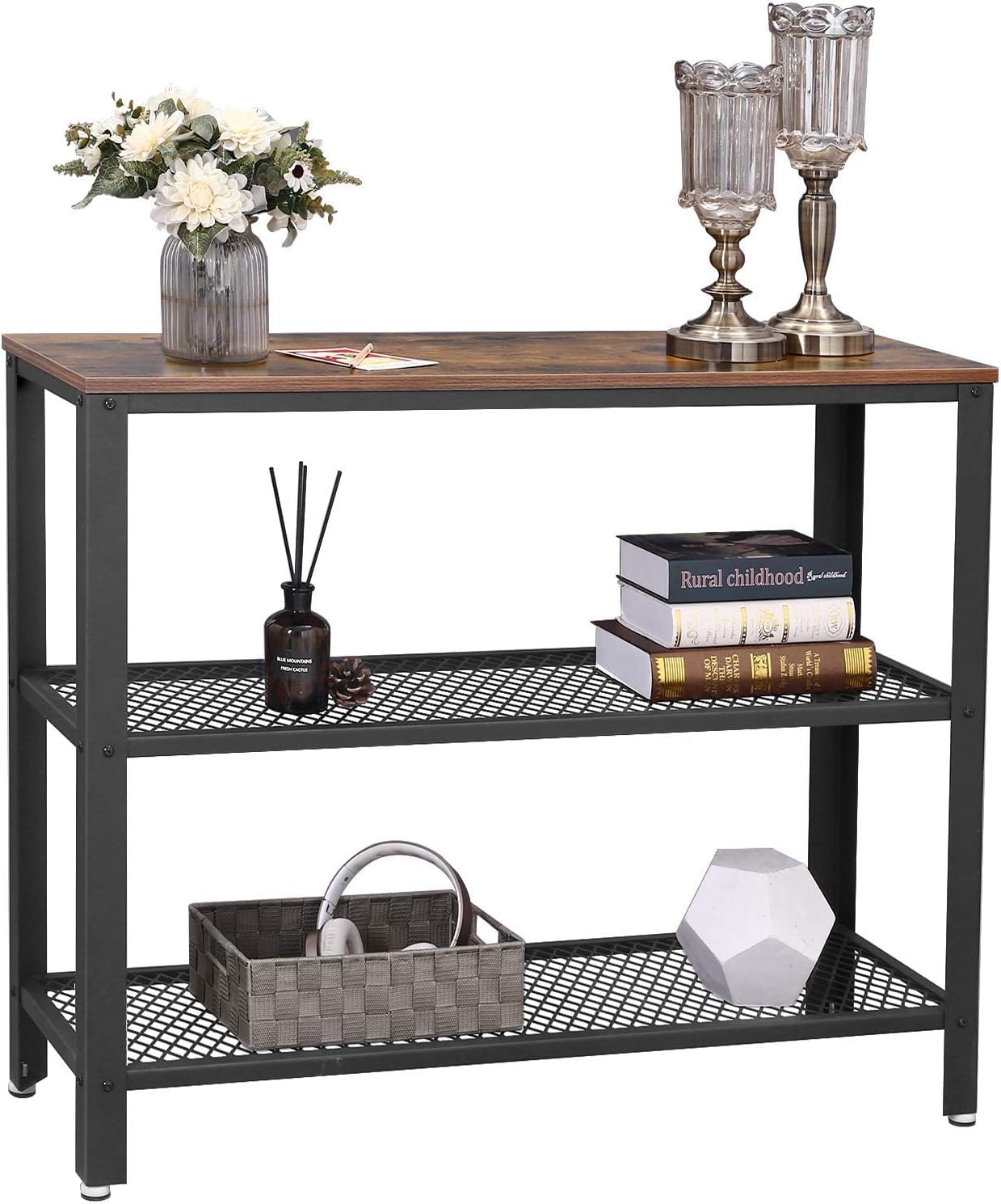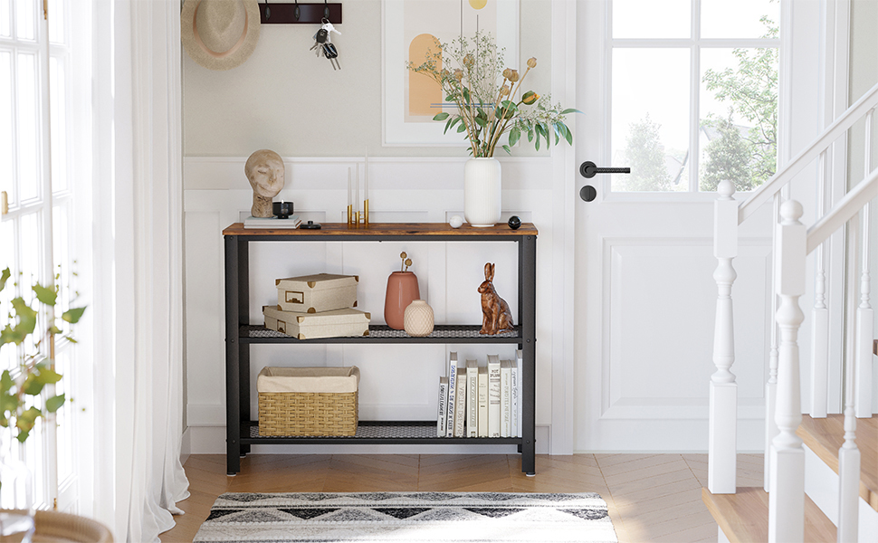 VASAGLE Masa de intrare, cadru metalic cu 3 polite din MDF, 35x102x80cm, maro rustic si negru Household NewTrend