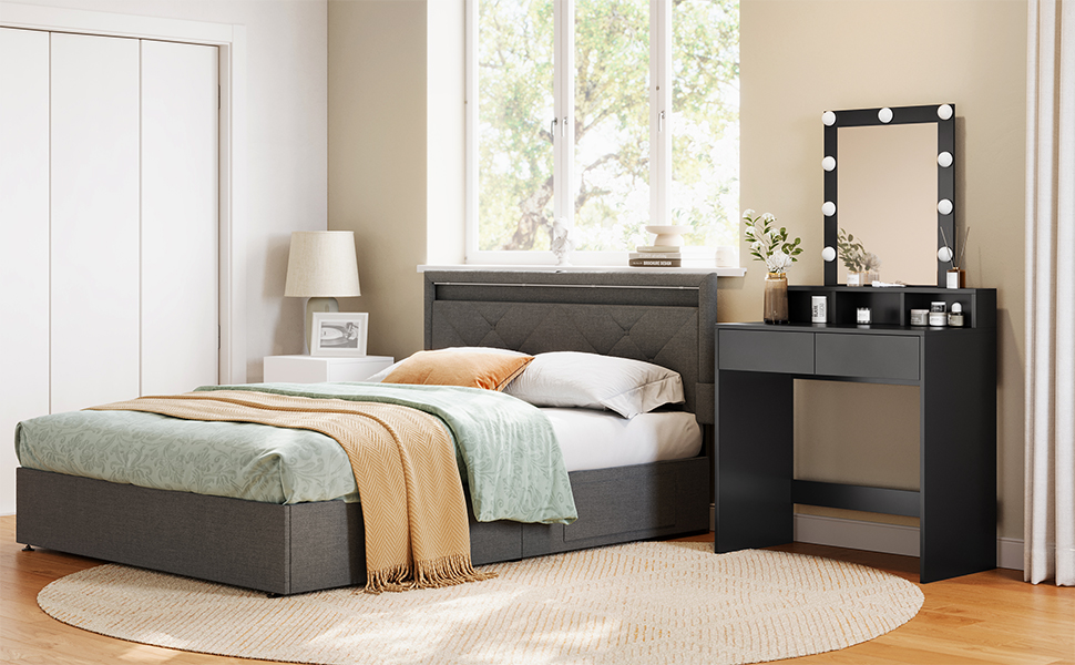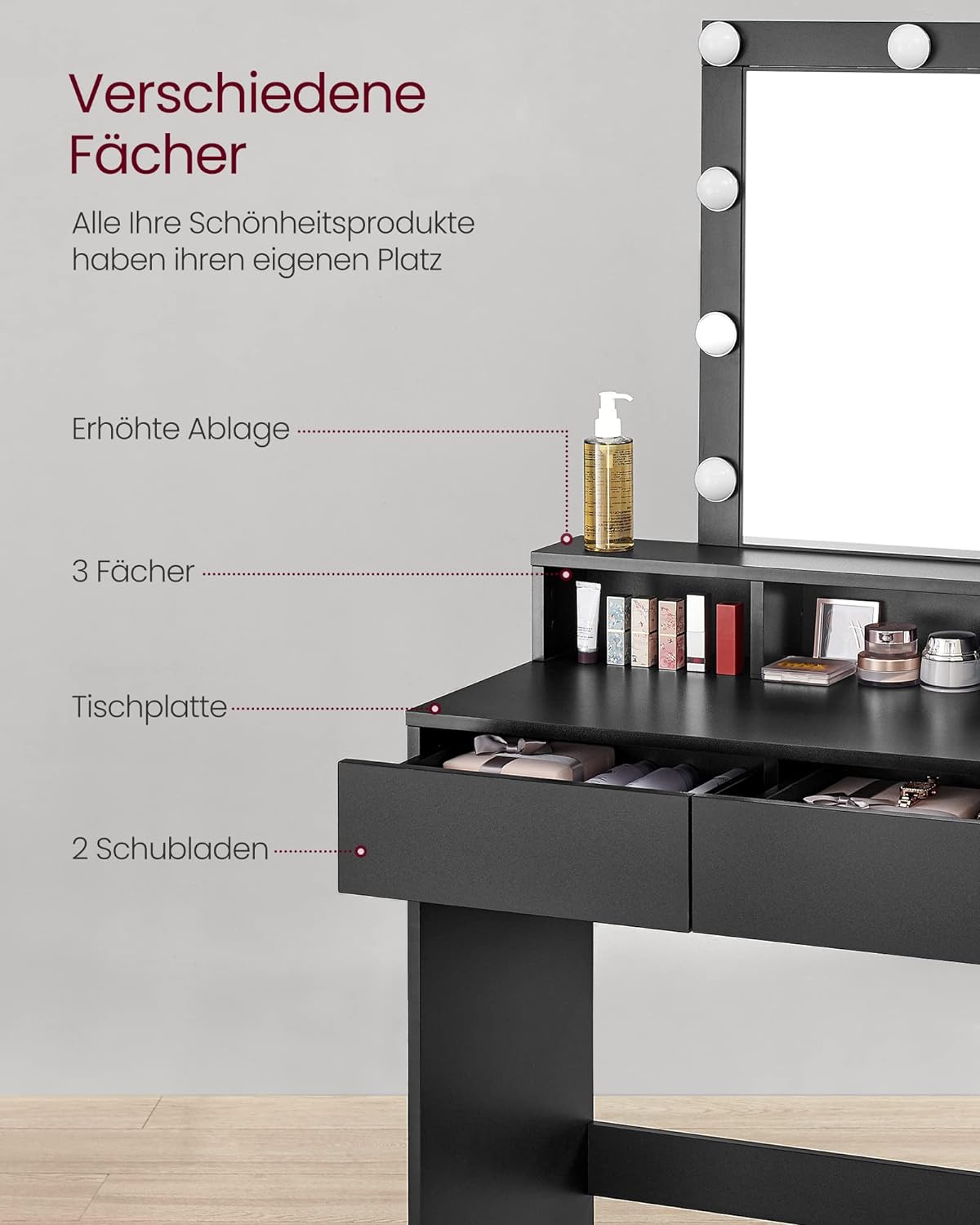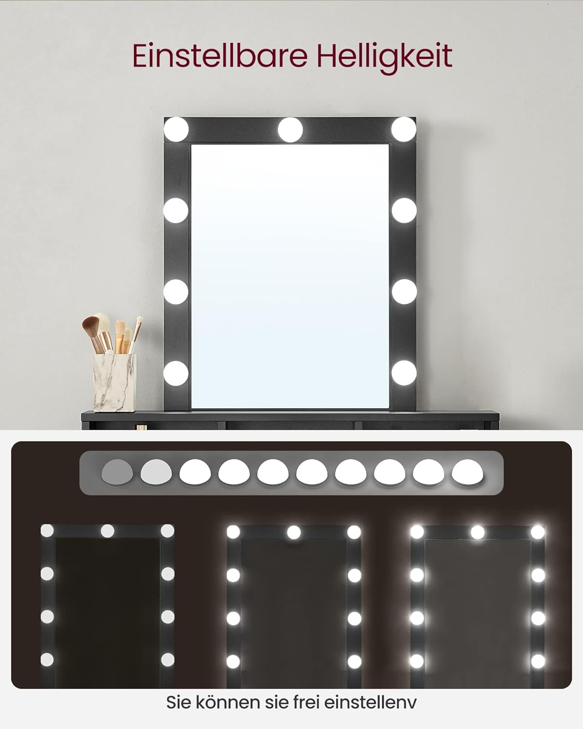 Descriere VASAGLE Masa toaleta iluminare LED, oglinda,