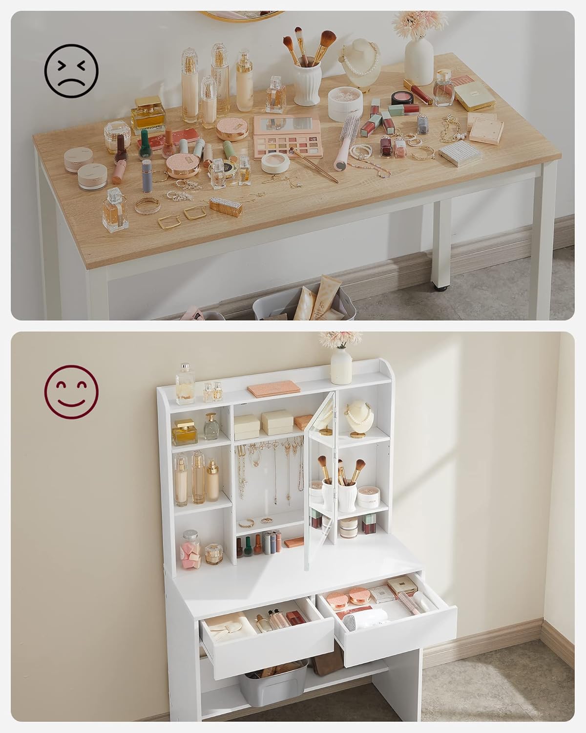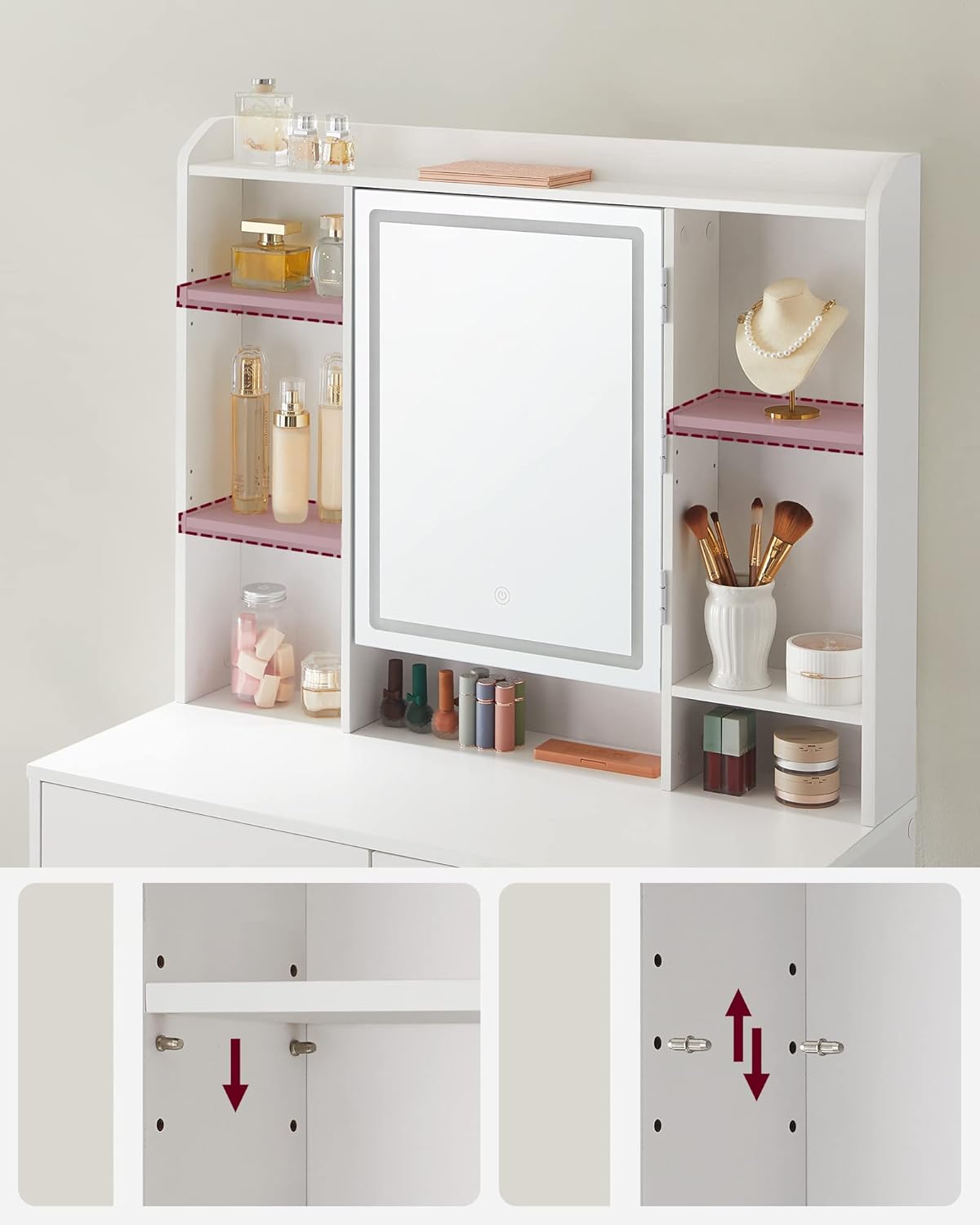 Descriere VASAGLE Masa toaleta oglinda, iluminare LED