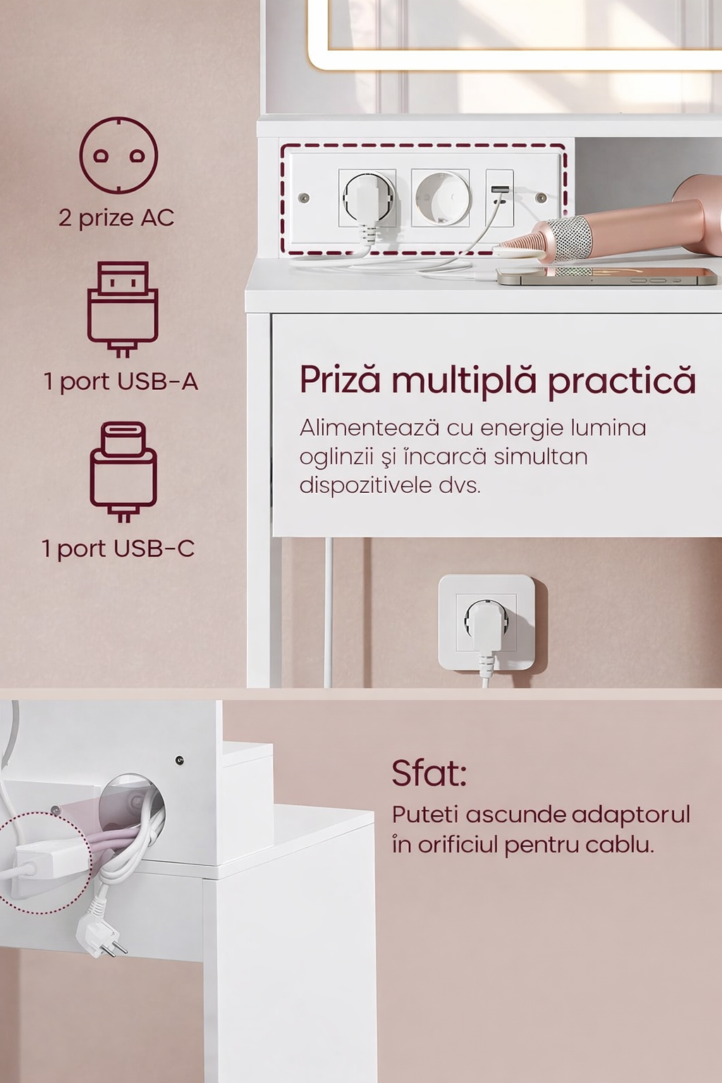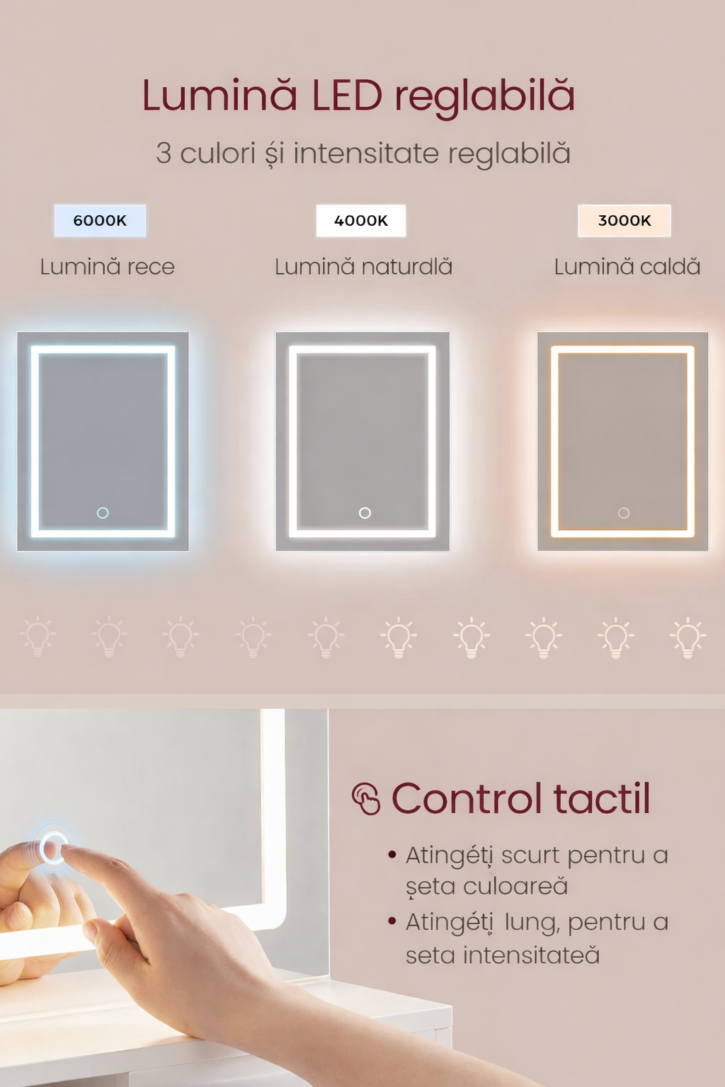 Specificatii VASAGLE Masa toaleta Kailyn oglinda LED