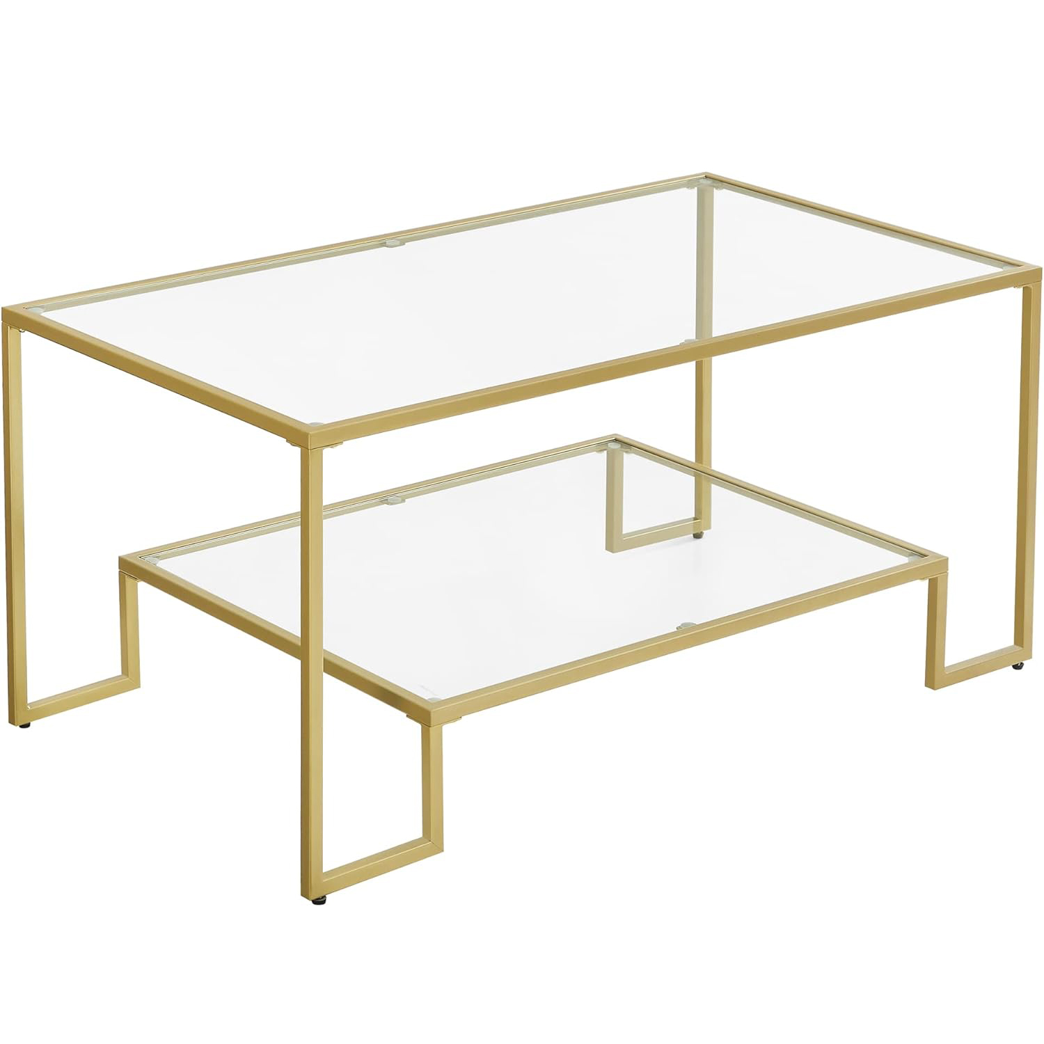 VASAGLE Masuta de cafea cu cadru din otel, suprafata din sticla calita, 100x55x45cm, auriu Household NewTrend