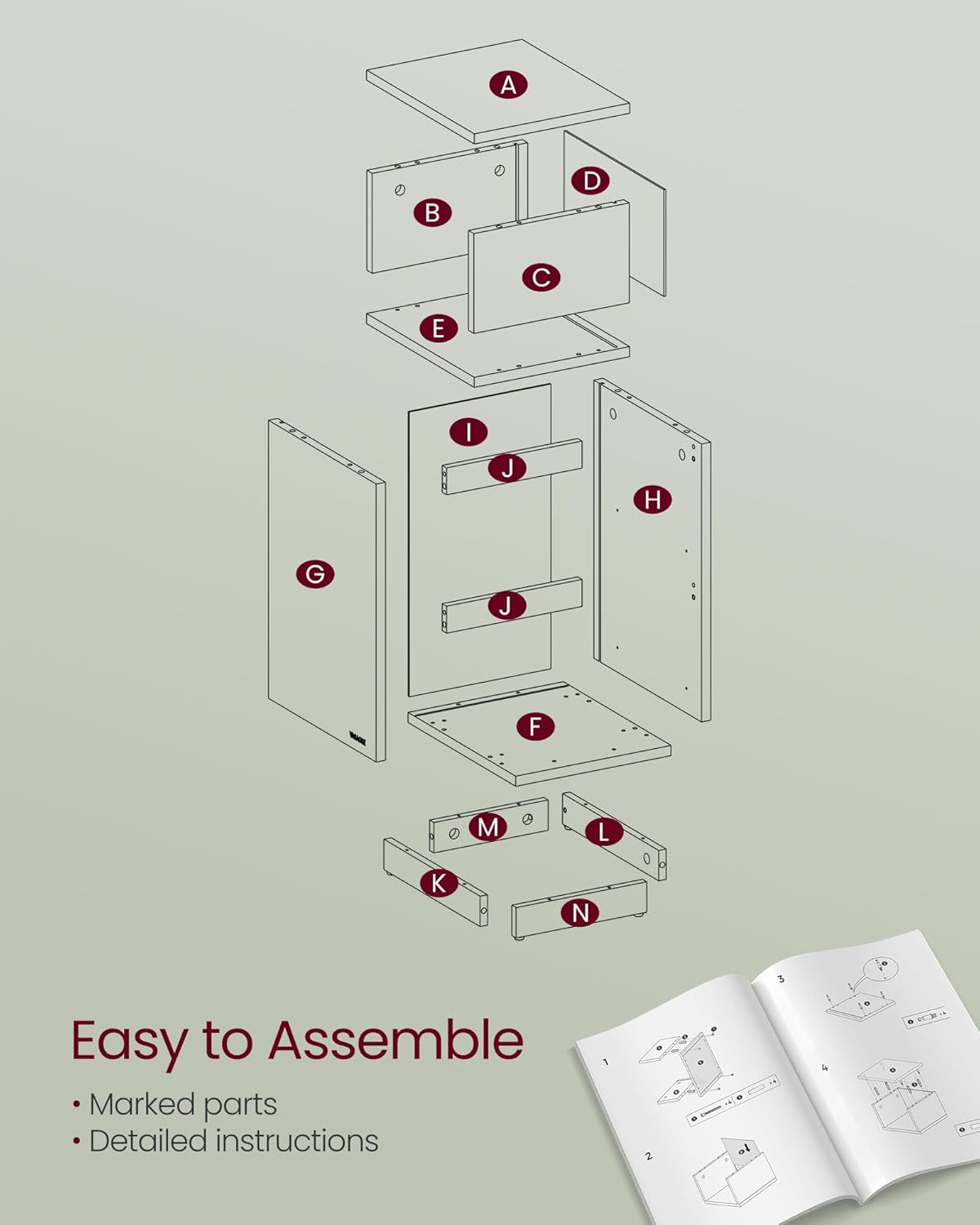 Descriere VASAGLE Noptiera ingusta 2 sertare, montaj