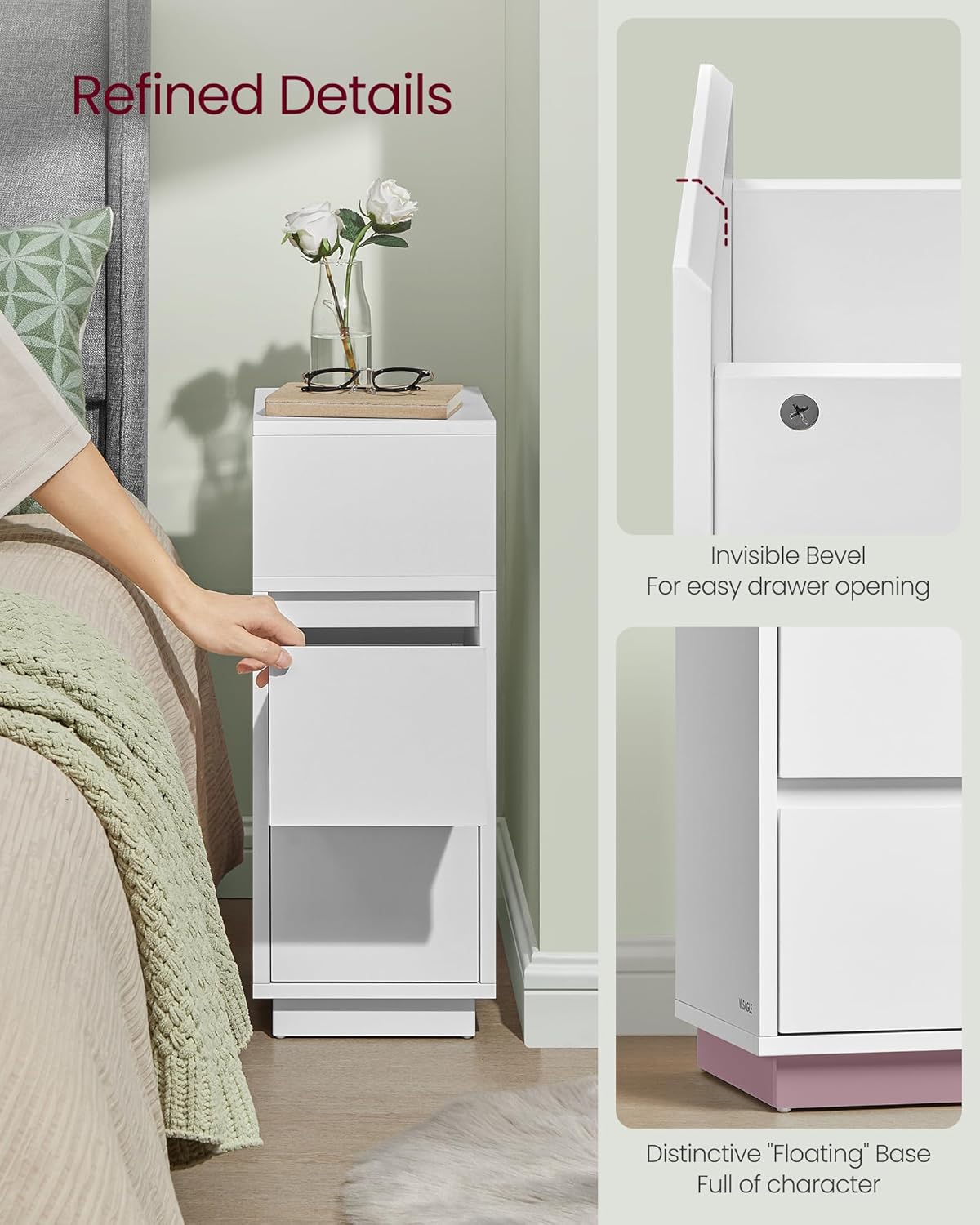 VASAGLE Noptiera ingusta cu 2 sertare, montaj stanga - dreapta, 30x25x65 cm, alb Household NewTrend