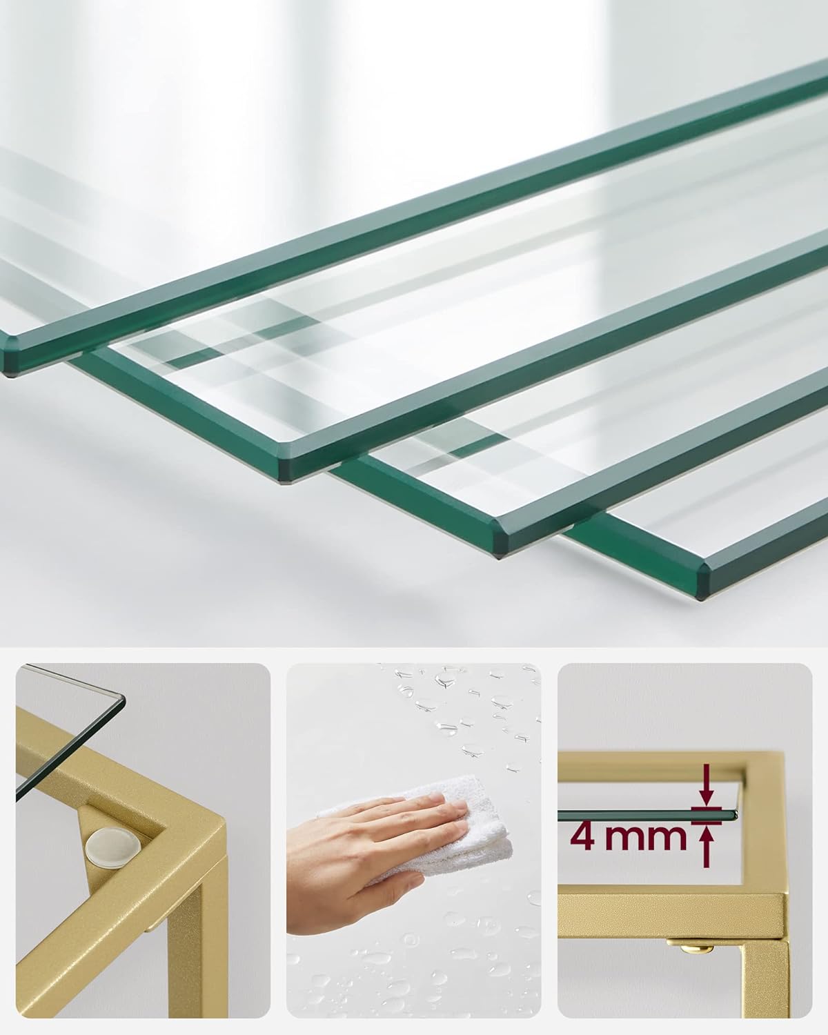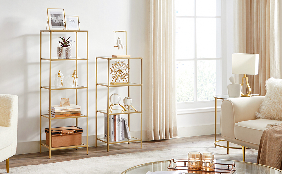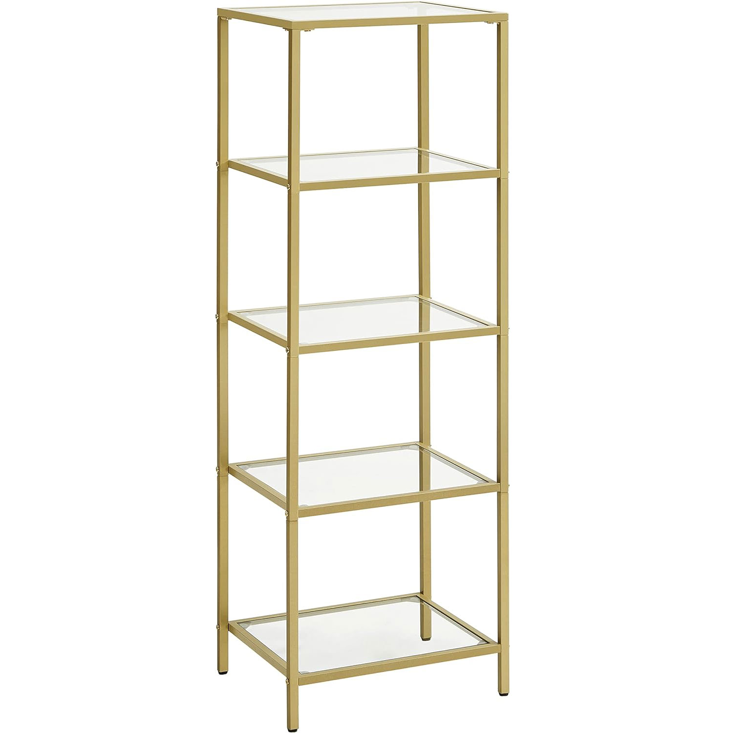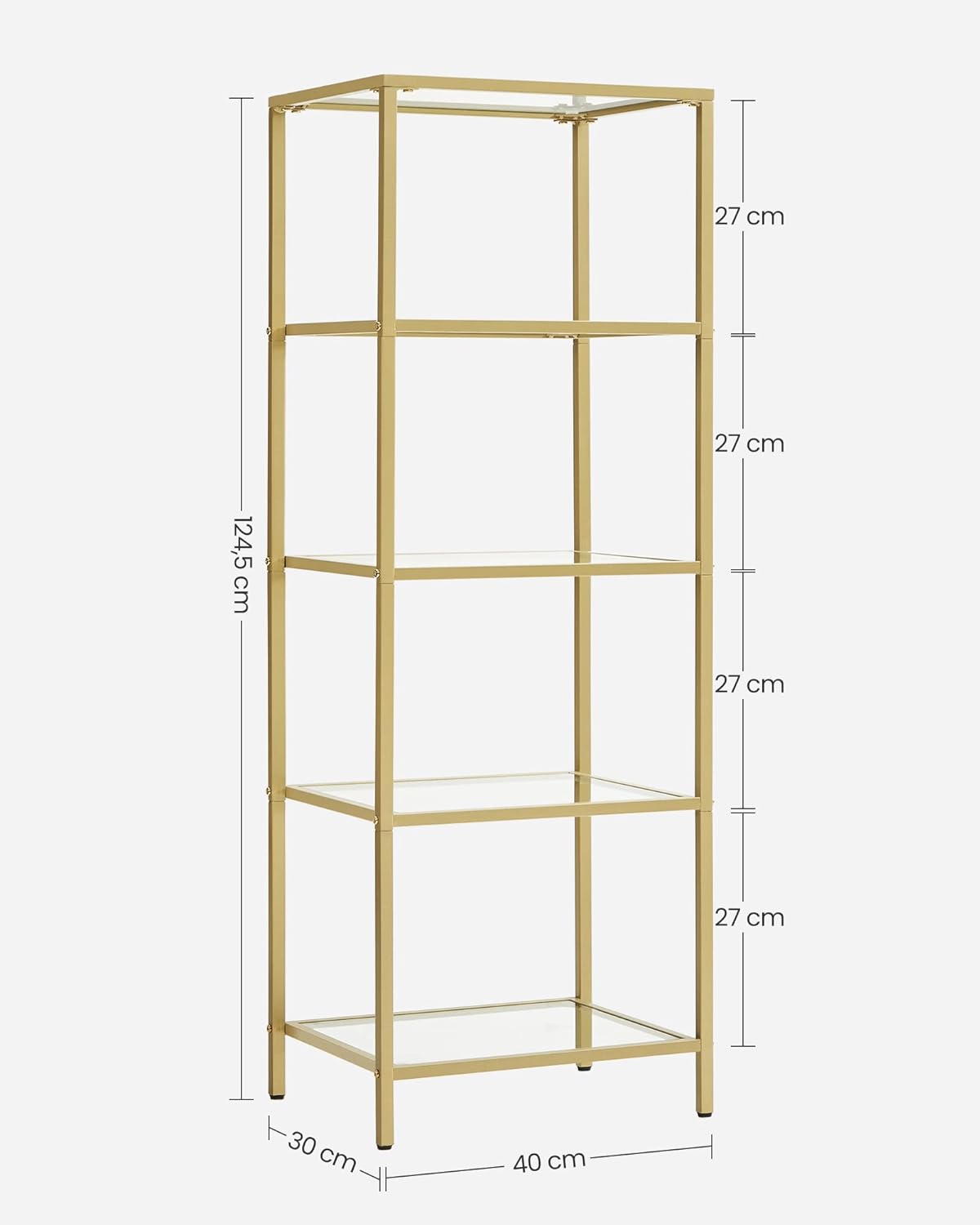 VASAGLE Raft cu trepte pentru dormitor, 5 etaje, din sticla securizata, cadru din otel, 30x124x40cm, auriu Household NewTrend