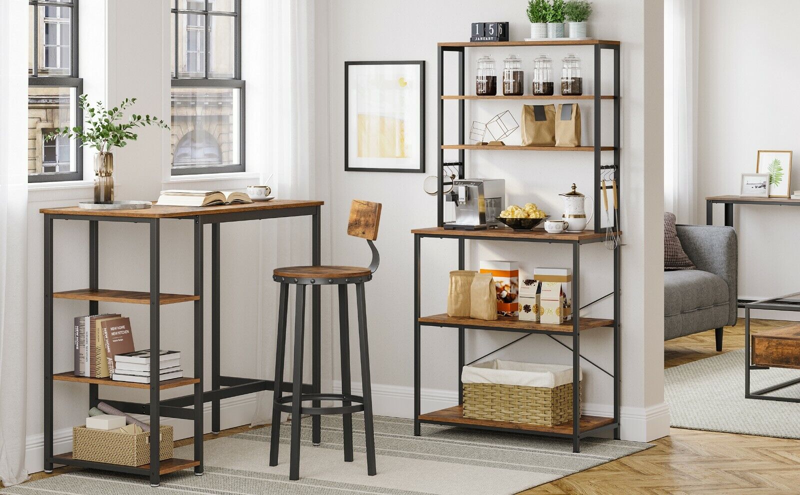 Organizează eficient spațiul cu acest raft de bucătărie pentru microunde VASAGLE, creat pentru locuințele în care funcționalitatea și designul merg mână în mână. Cu un aspect industrial în nuanțe de maro retro și negru, acest raft de depozitare pentru bucătărie oferă loc generos pentru aparate, condimente, veselă și ustensile, fără să încarce vizual încăperea.
