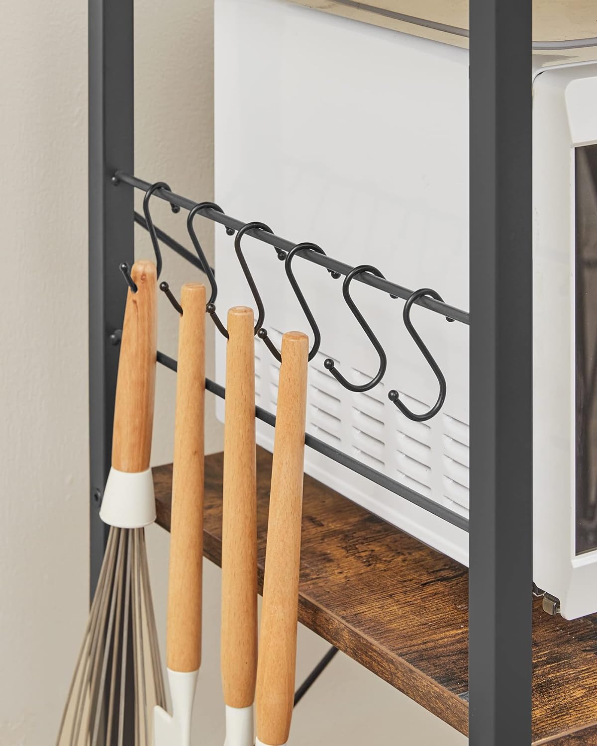 VASAGLE Raft de bucatarie, suport pentru cuptorul cu microunde, cos de sarma, 6 carlige S, 39x90x132cm, maro rustic Household NewTrend