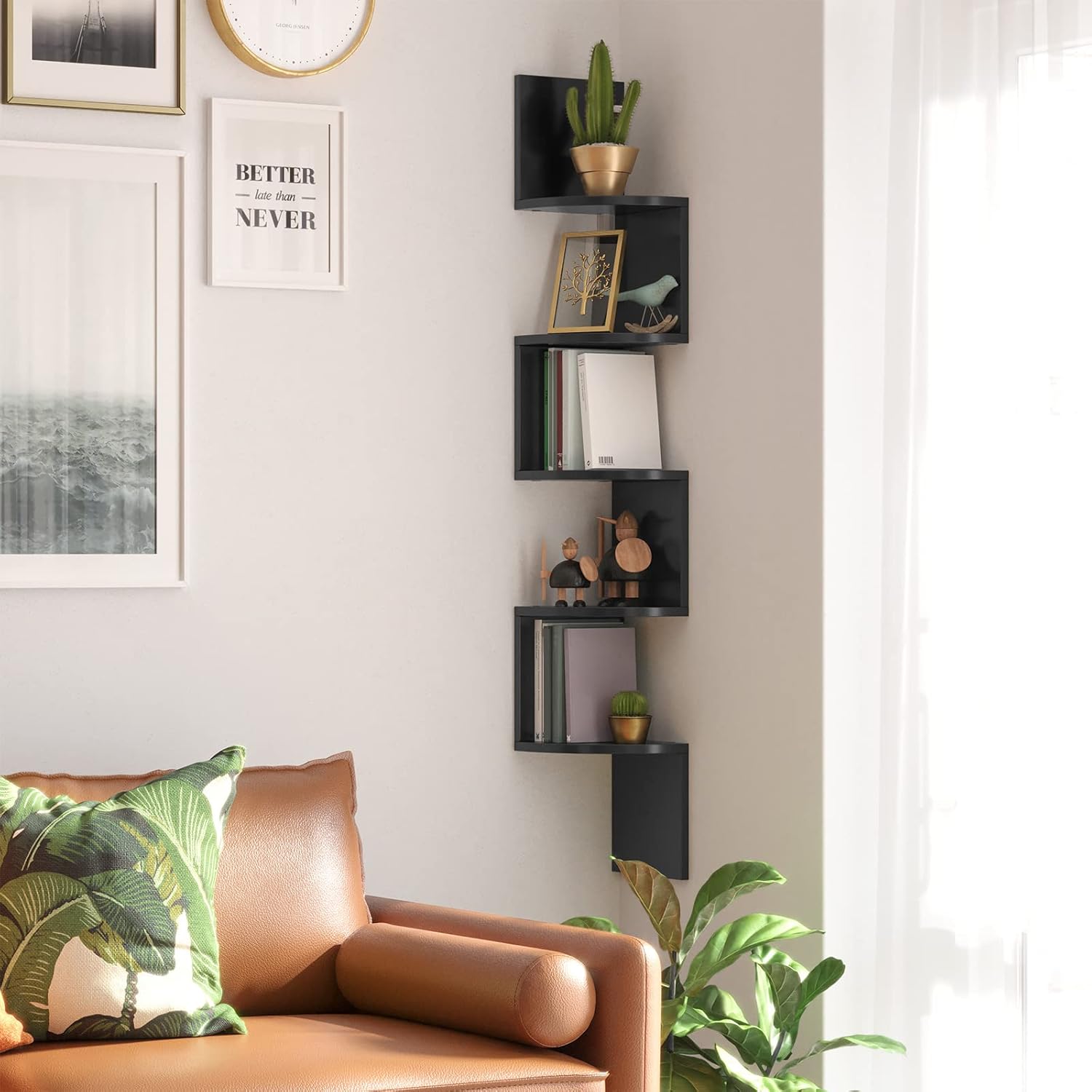 VASAGLE Raft de colt plutitor pe 5 niveluri, din lemn, 20x20x128cm, negru Household NewTrend