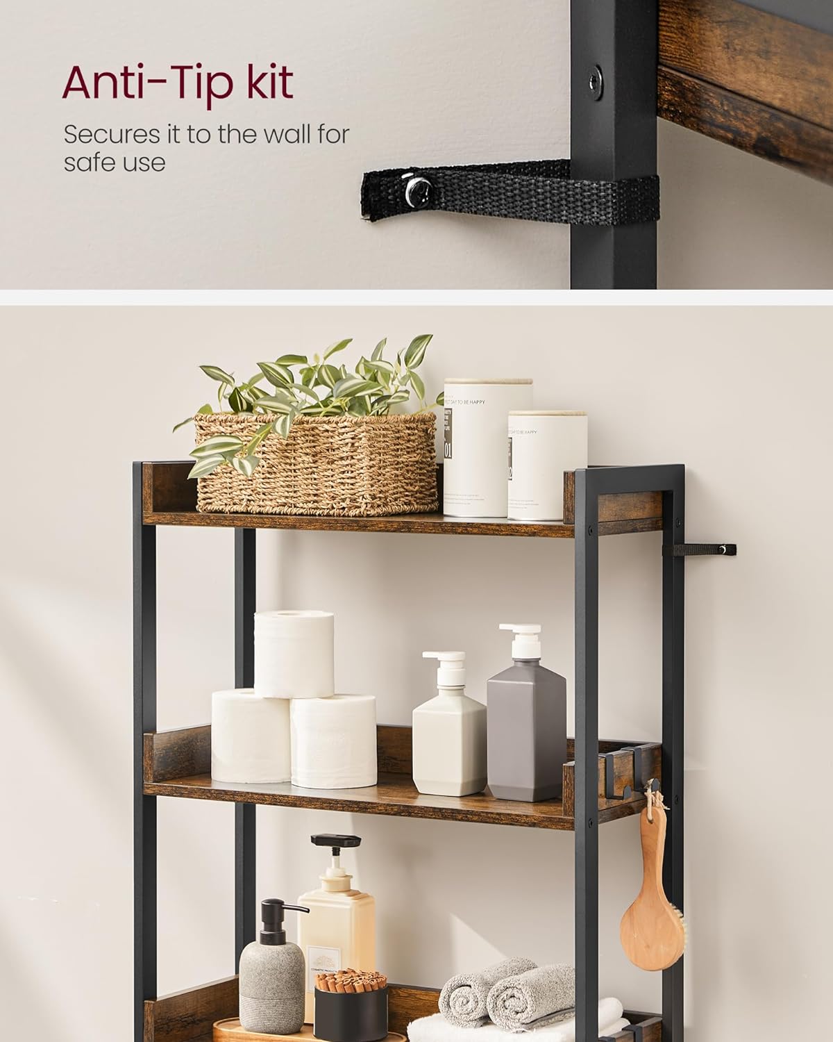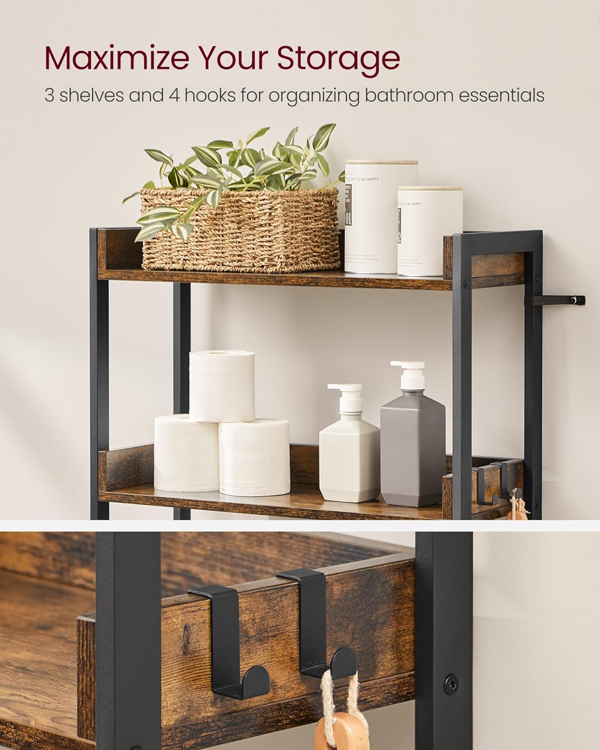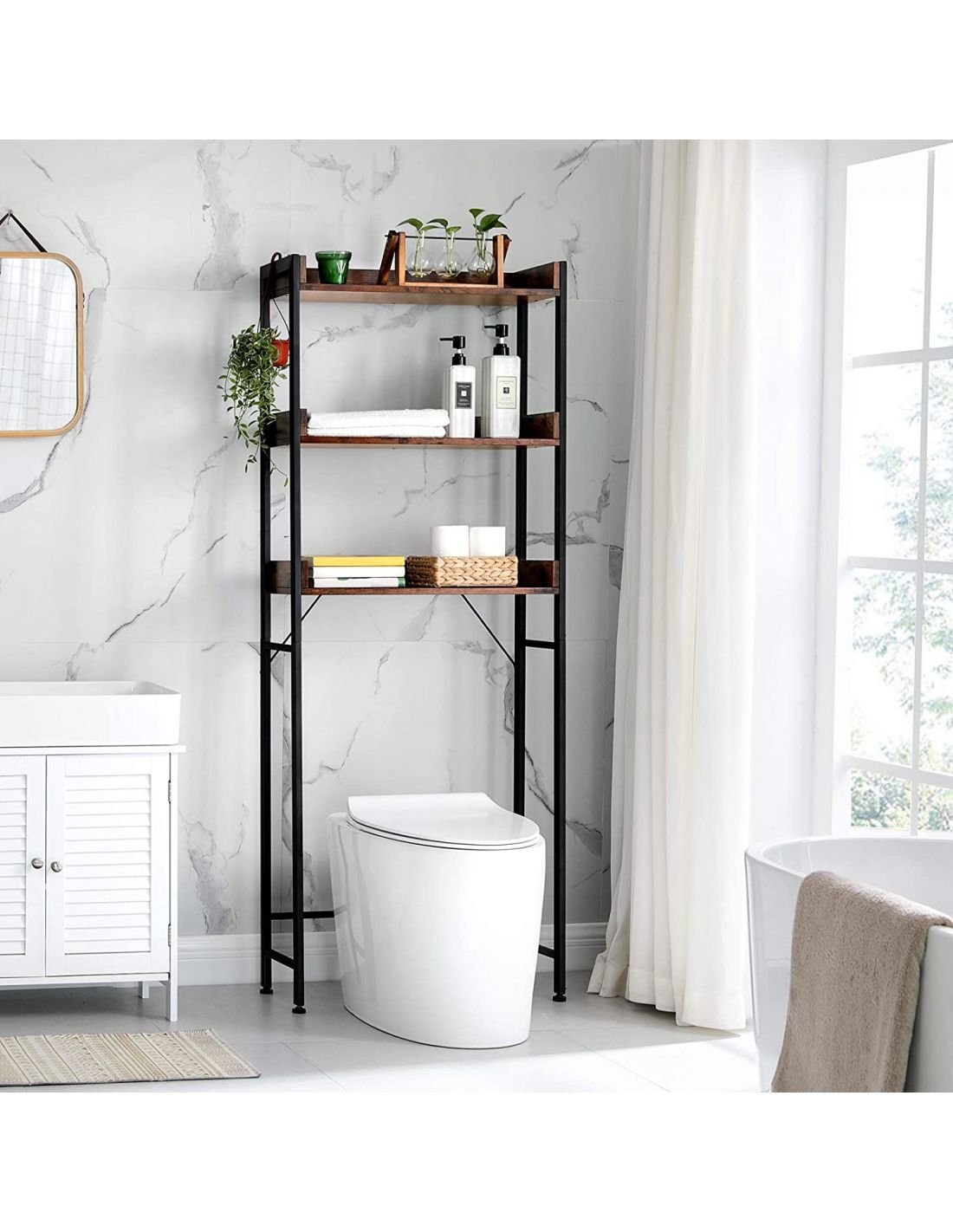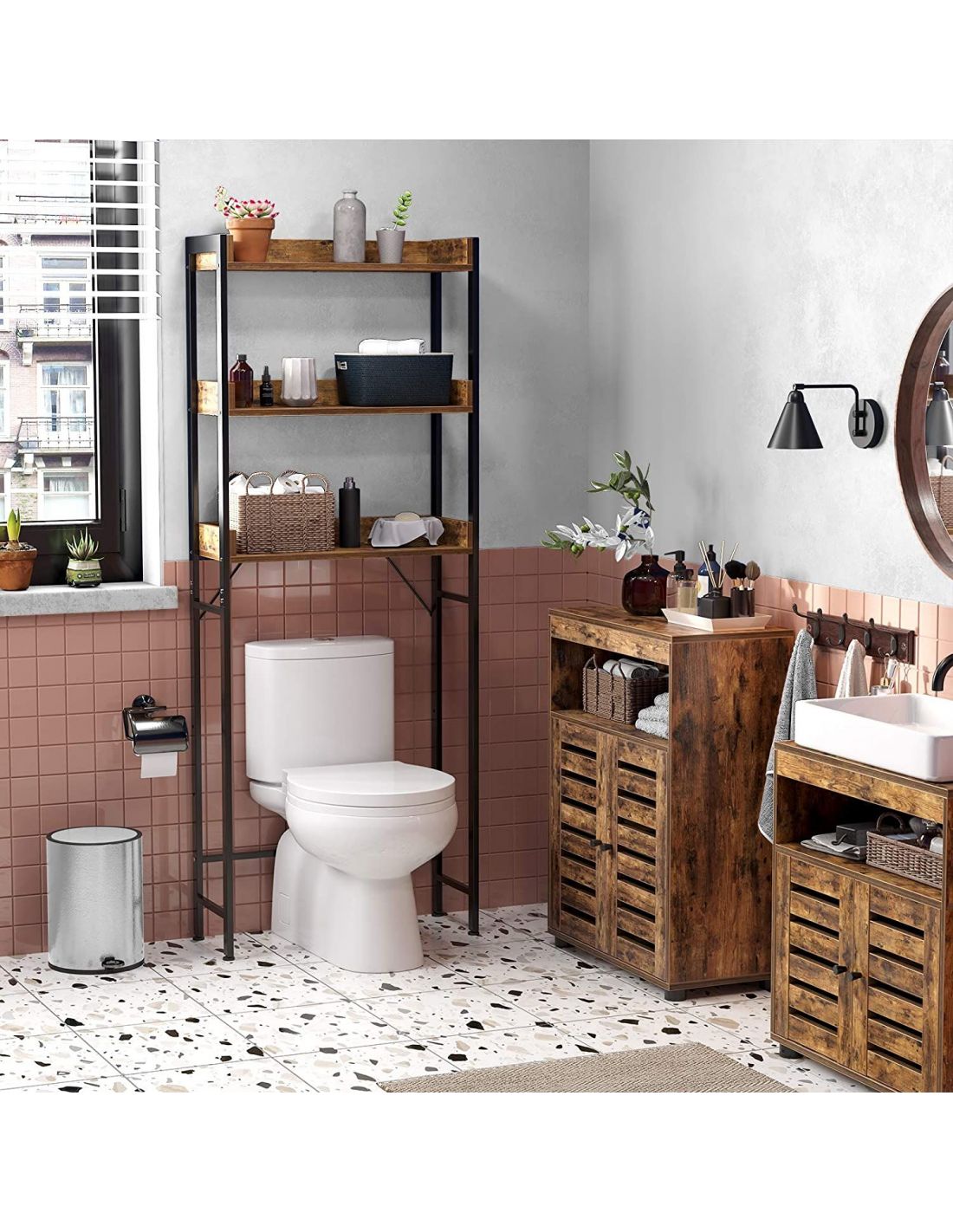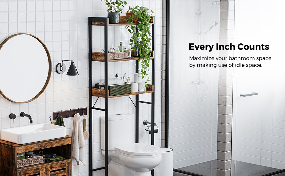 VASAGLE Raft de depozitare pentru baie, suprapunere peste masina spalat sau vas WC, 25x63x165 cm, maro Household NewTrend