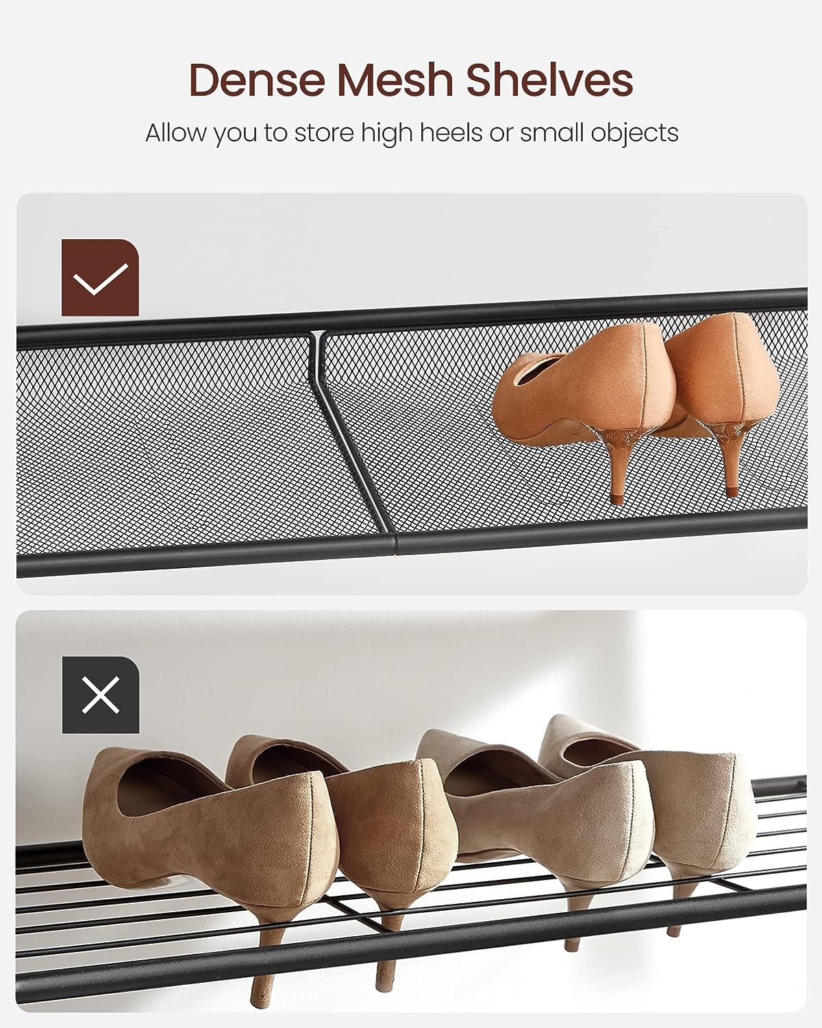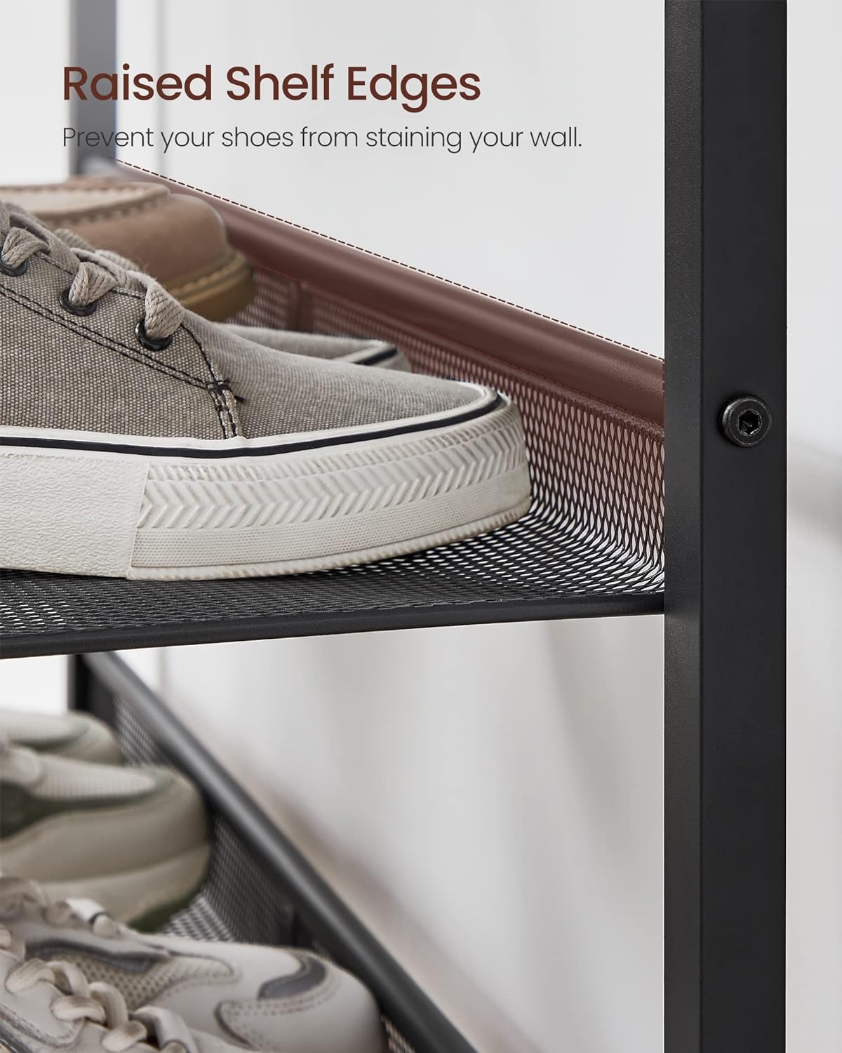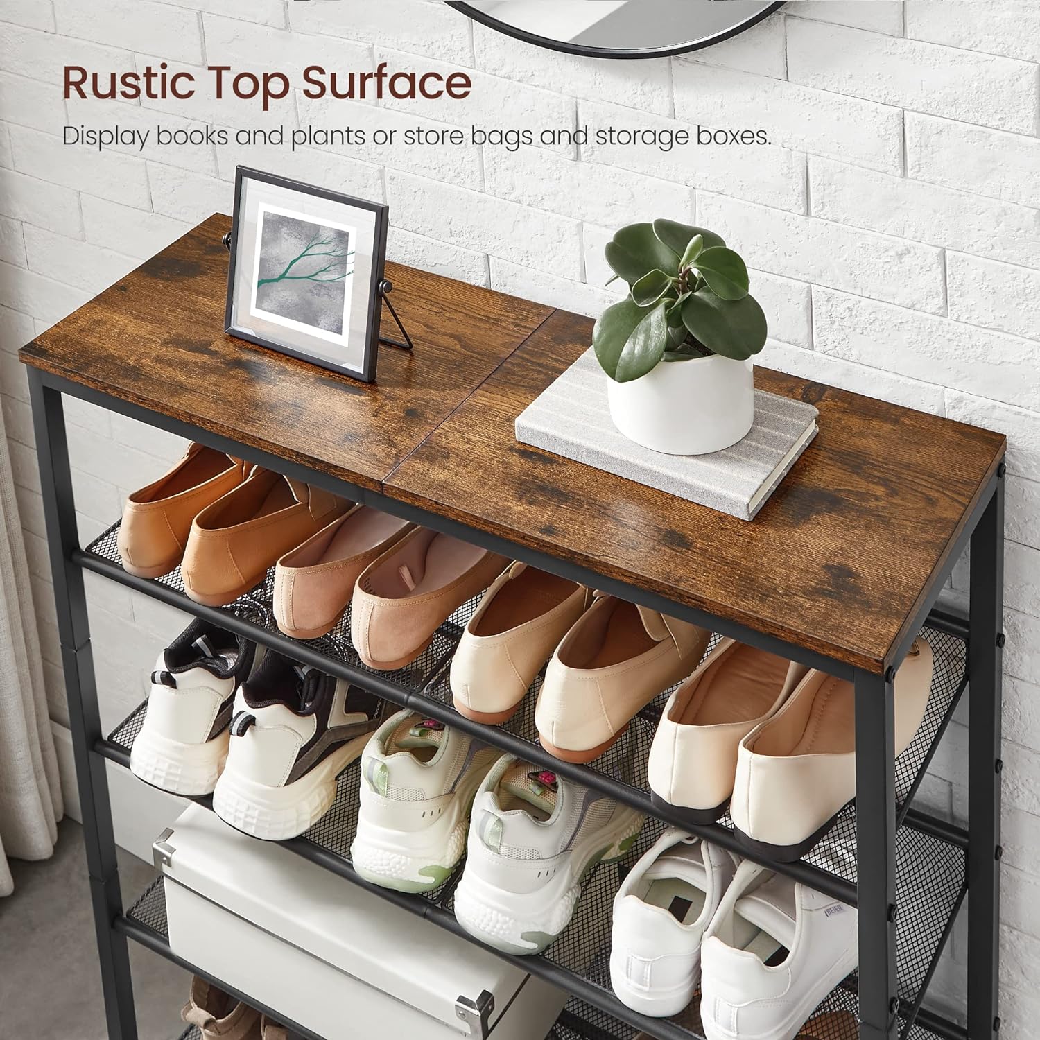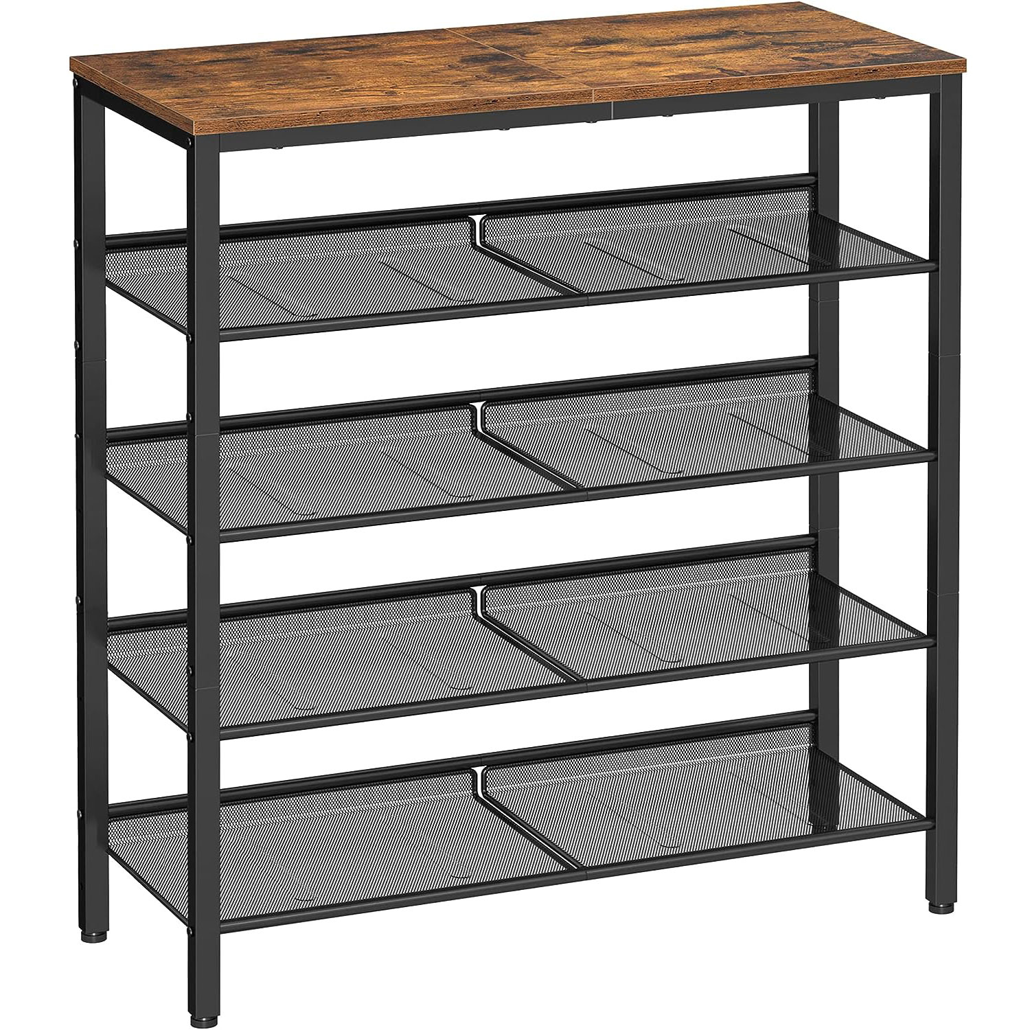 VASAGLE Raft de pantofi, 5 niveluri, rafturi reglabile din plasa, metal, stil industrial, 75x28x93cm, maro vintage negru Household NewTrend