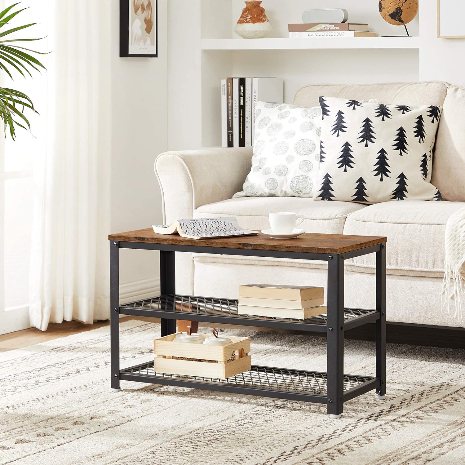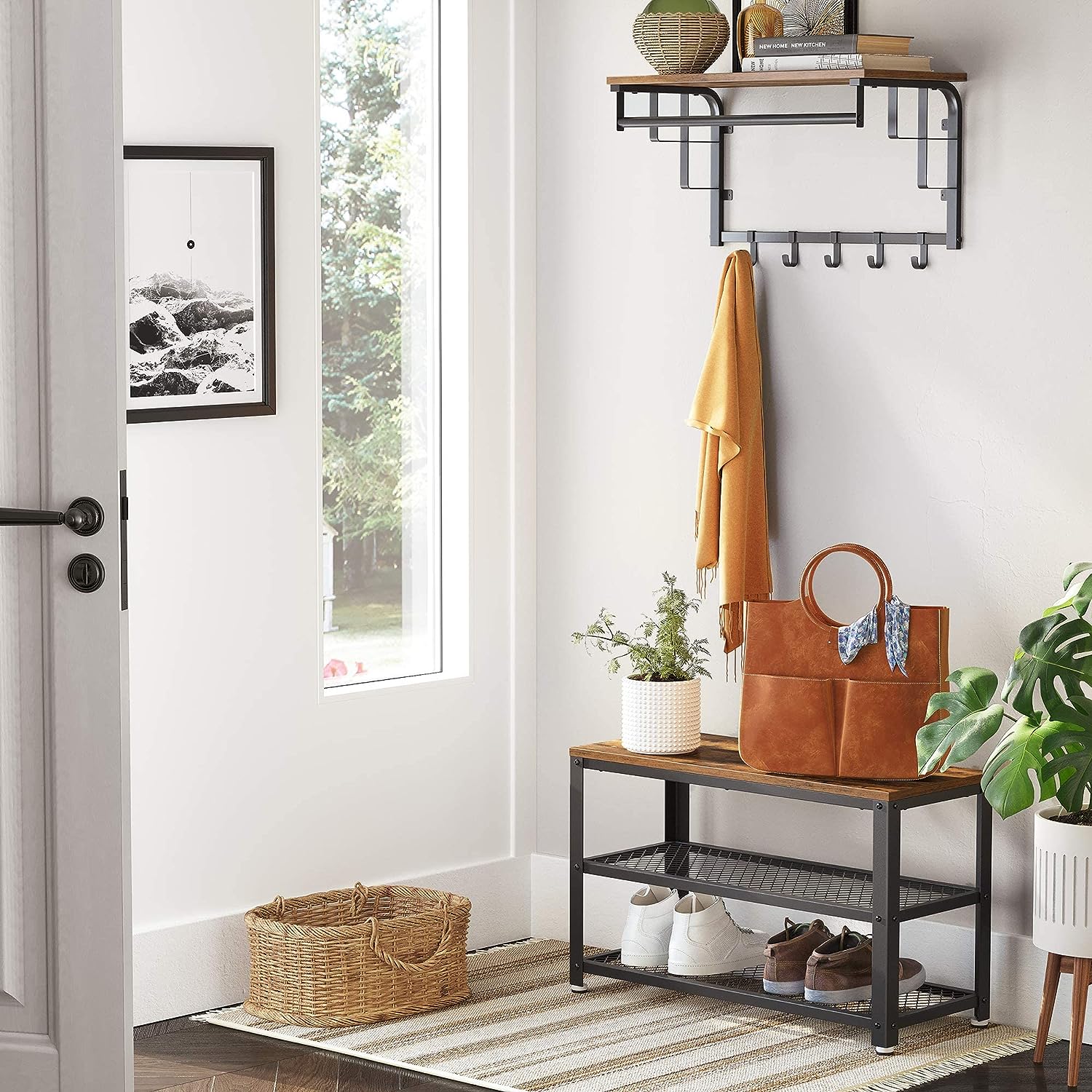 VASAGLE Raft pentru pantofi cu 2 polite, 73x30x45cm, otel, stil industrial, maro rustic si negru Household NewTrend