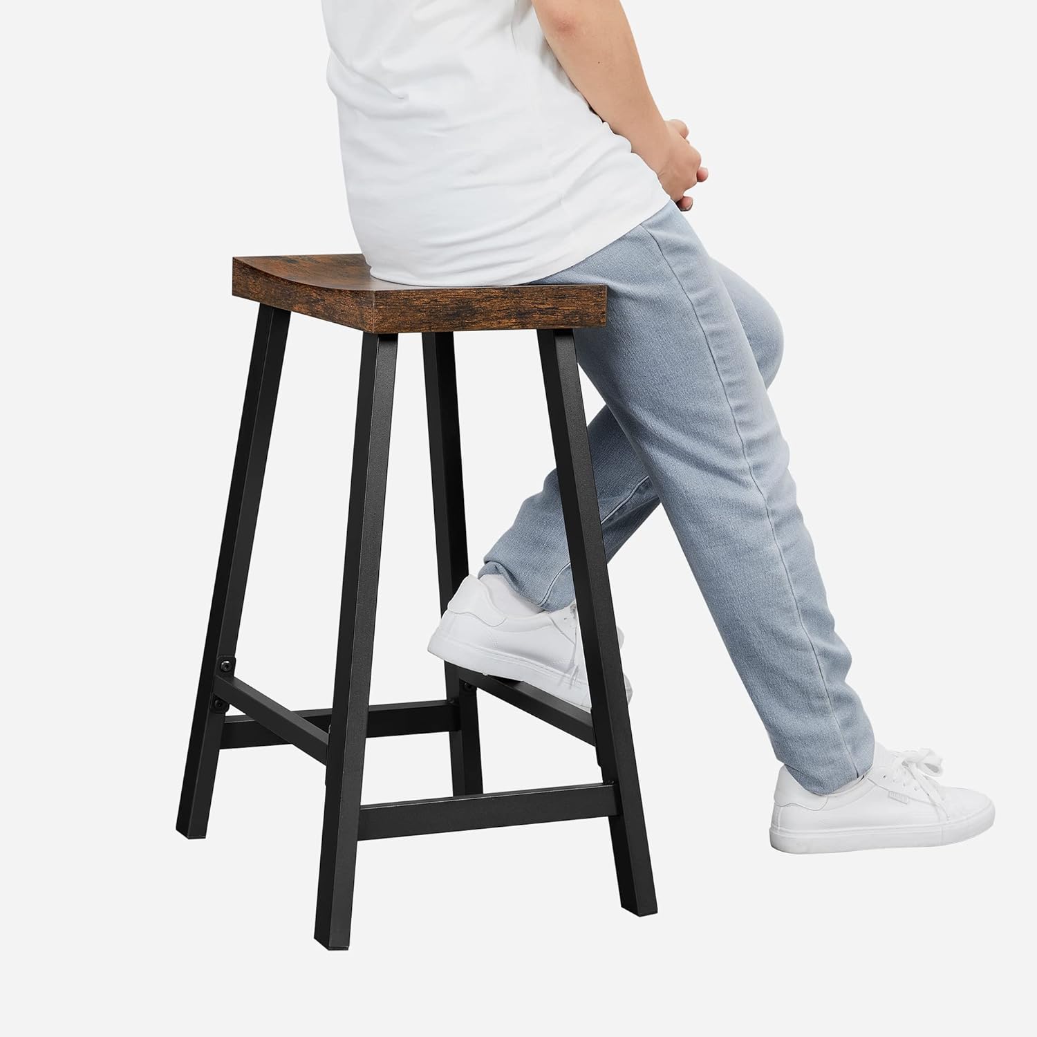 VASAGLE Set 2 scaune bar cu sezut curbat, cadru metalic, 46x33x60 cm, maro rustic Household NewTrend