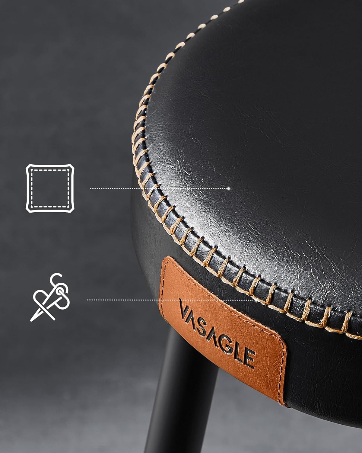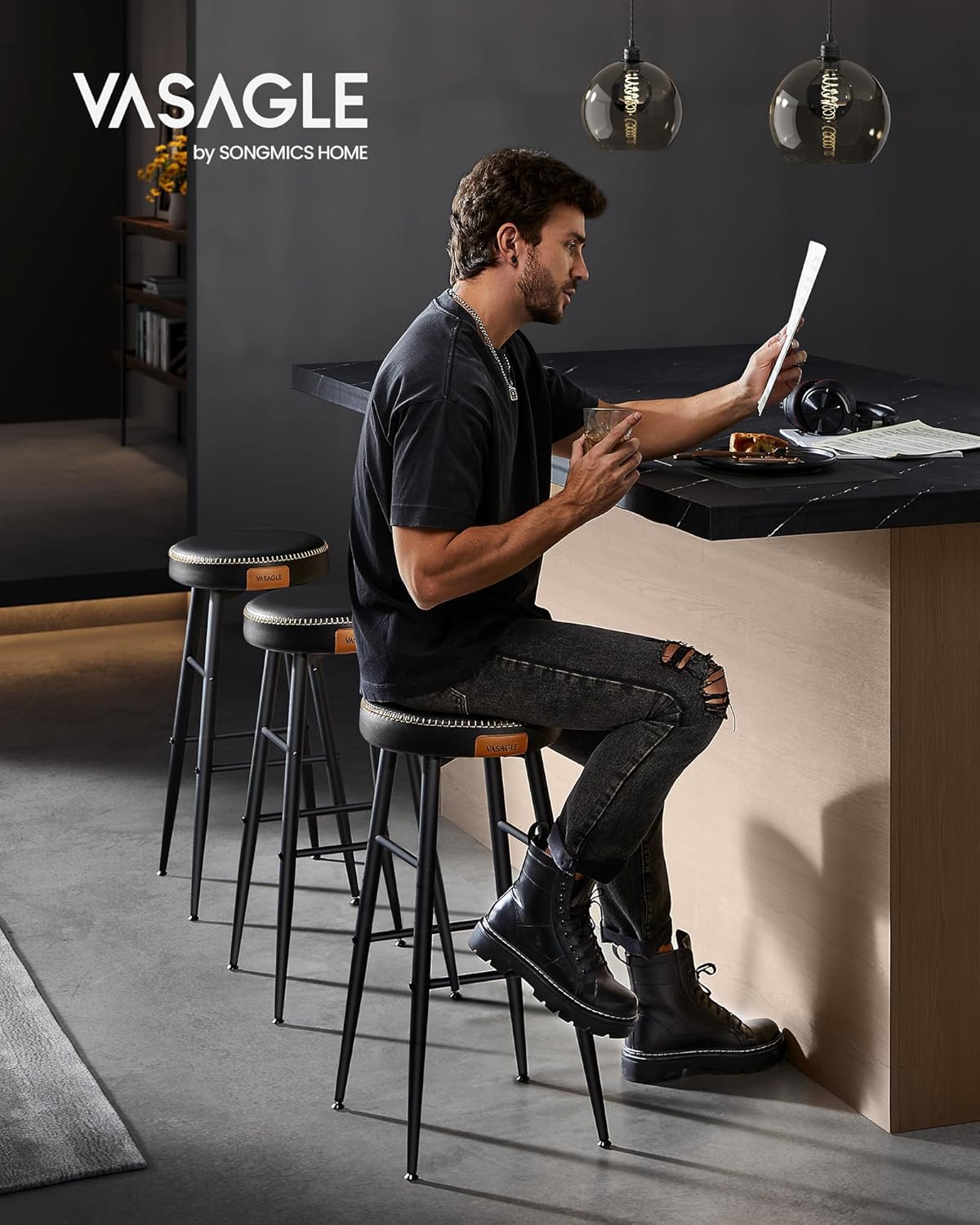 VASAGLE Set 2 scaune bar Ekho, tapitate PU, inaltime sezut 76 cm, 52x76 cm, negru Household NewTrend