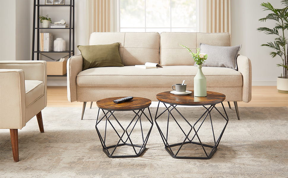 VASAGLE Set de 2 mese de cafea, stil industrial, 50x40cm si 40x36cm, maro rustic si negru Household NewTrend