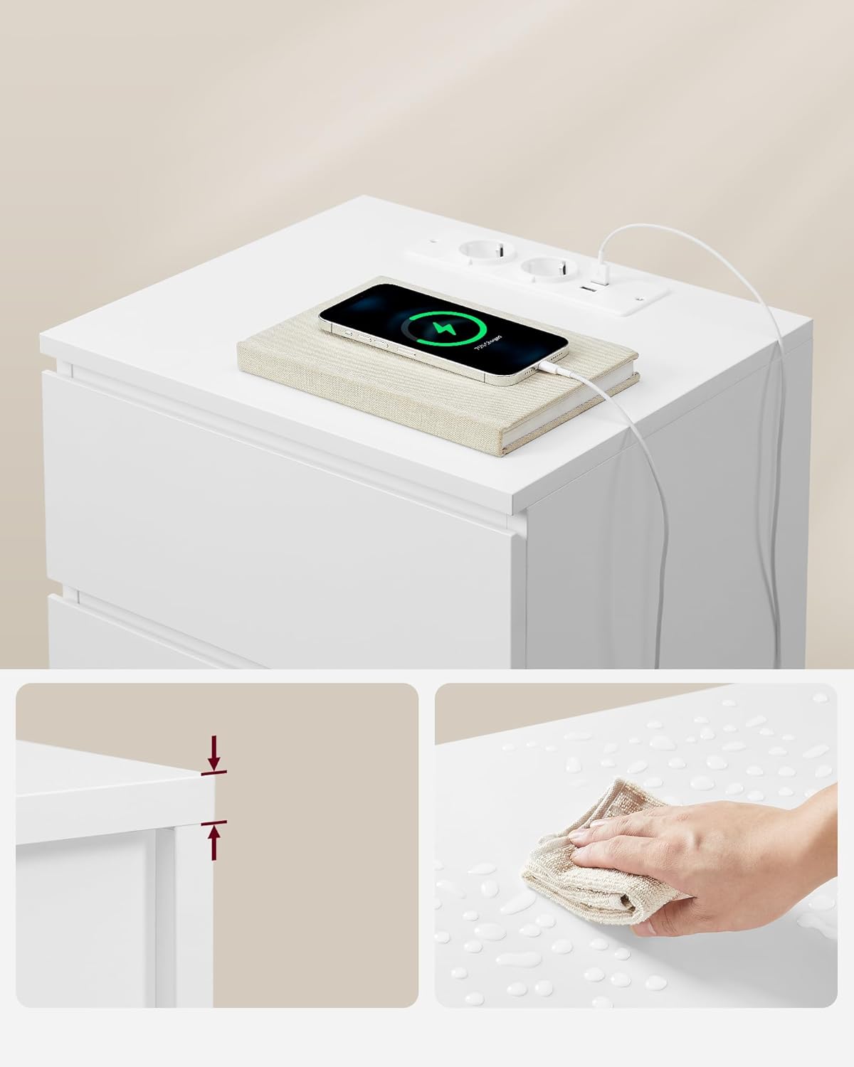 VASAGLE Set de 2 noptiere, cu sertare, 2 prize si 2 USB, 35x40x59 cm, alb Household NewTrend