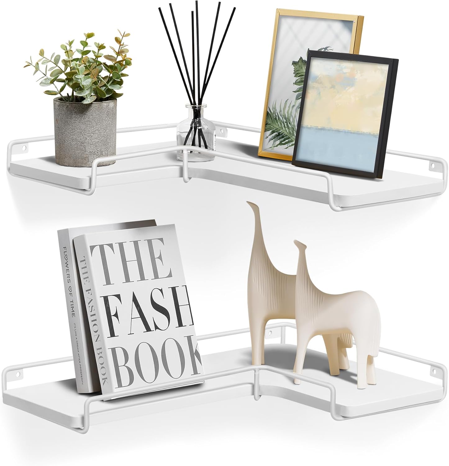VASAGLE Set de 2 rafturi plutitoare de colt in forma de L, stil industrial, 40x29x14cm, alb Household NewTrend