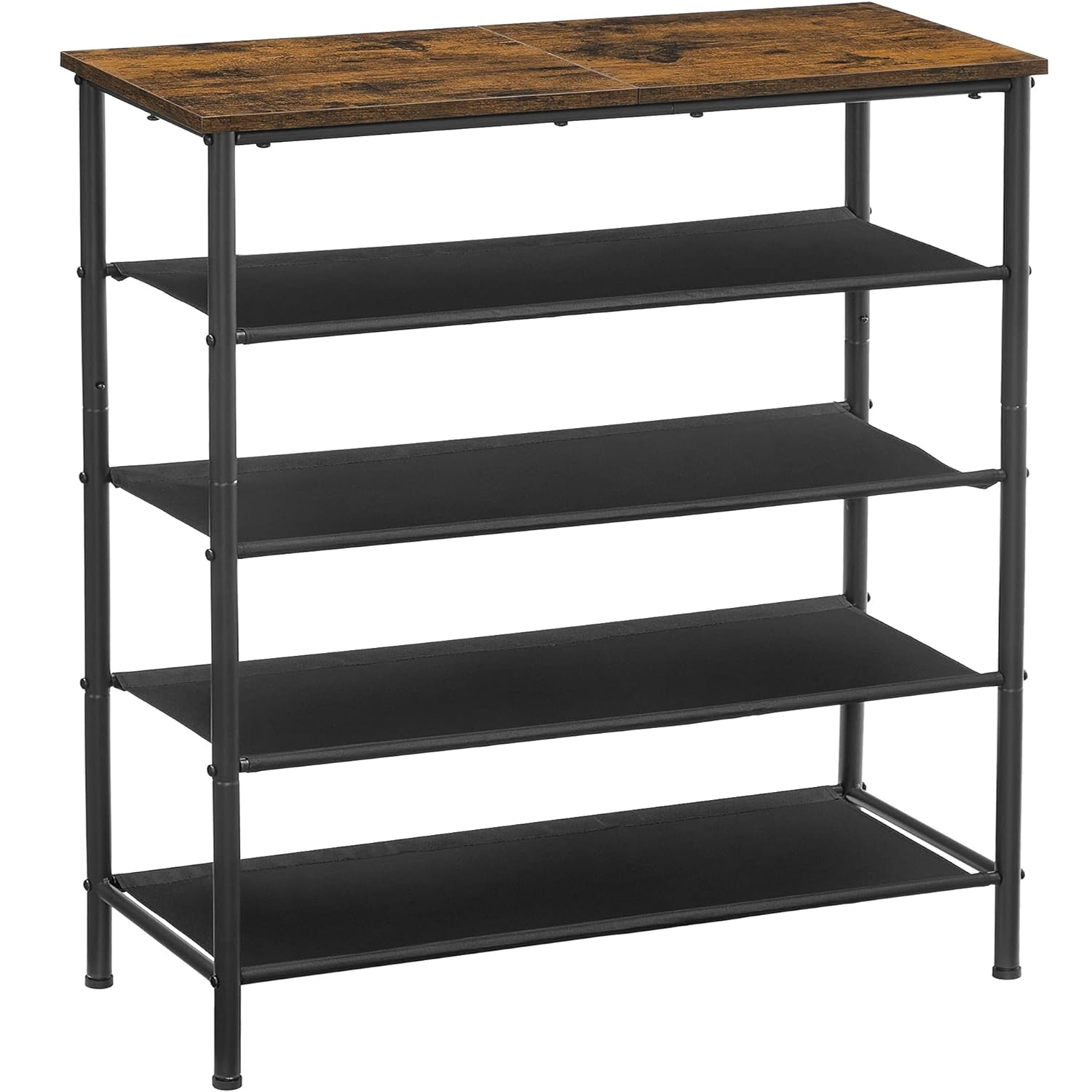 VASAGLE Suport pantofi 75x30x91 cm, 5 niveluri, rafturi textile si blat PAL, cadru metalic, maro rustic si negru Household NewTrend