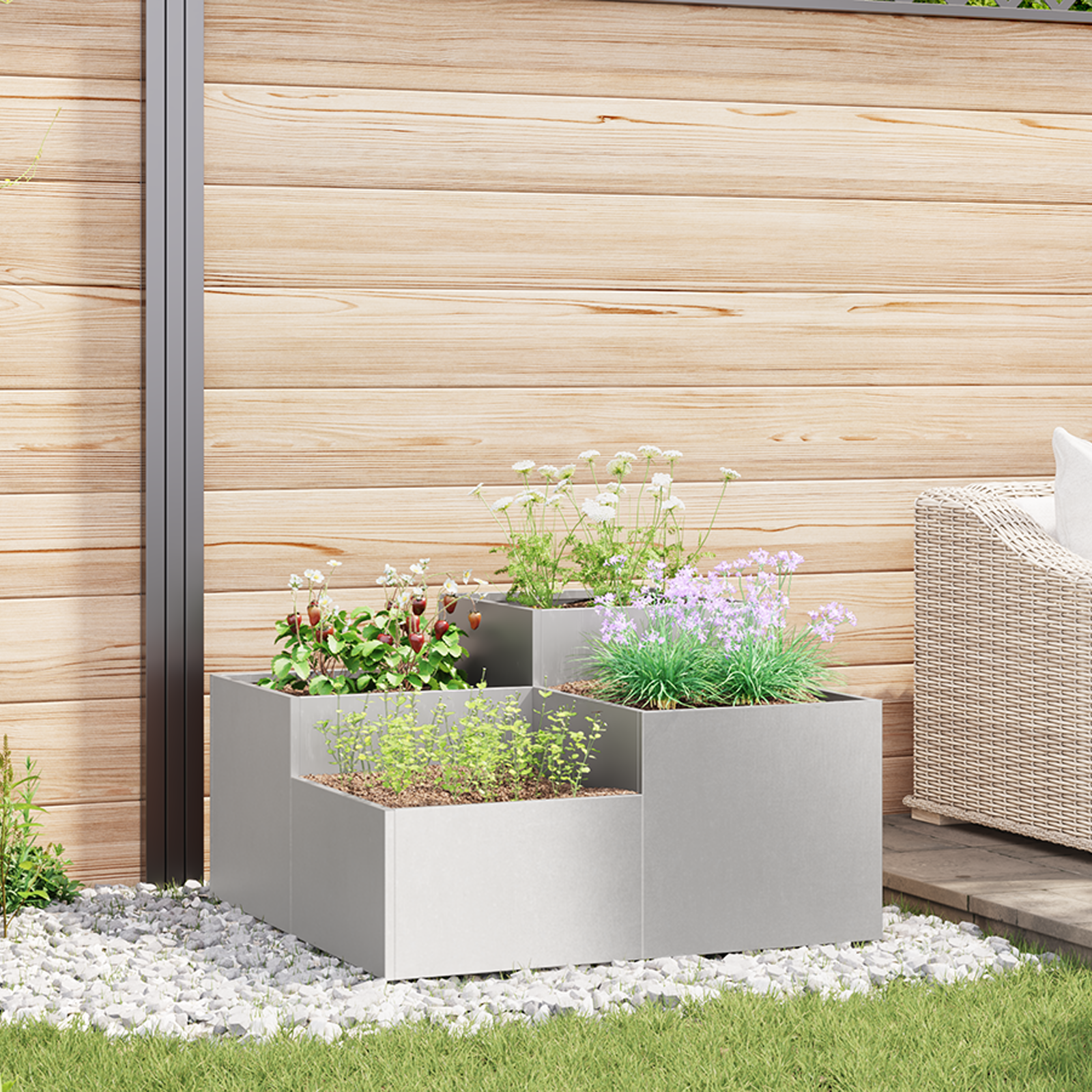 - Materiale: Fabricată din metale rezistente, această jardinieră suportă vremea, oferind un cămin durabil pentru plantele tale exterioare. Calitățile sale rezistente la UV protejează jardiniera și plantele de daunele solare, menținând grădina ta vibrantă pe tot parcursul anului.