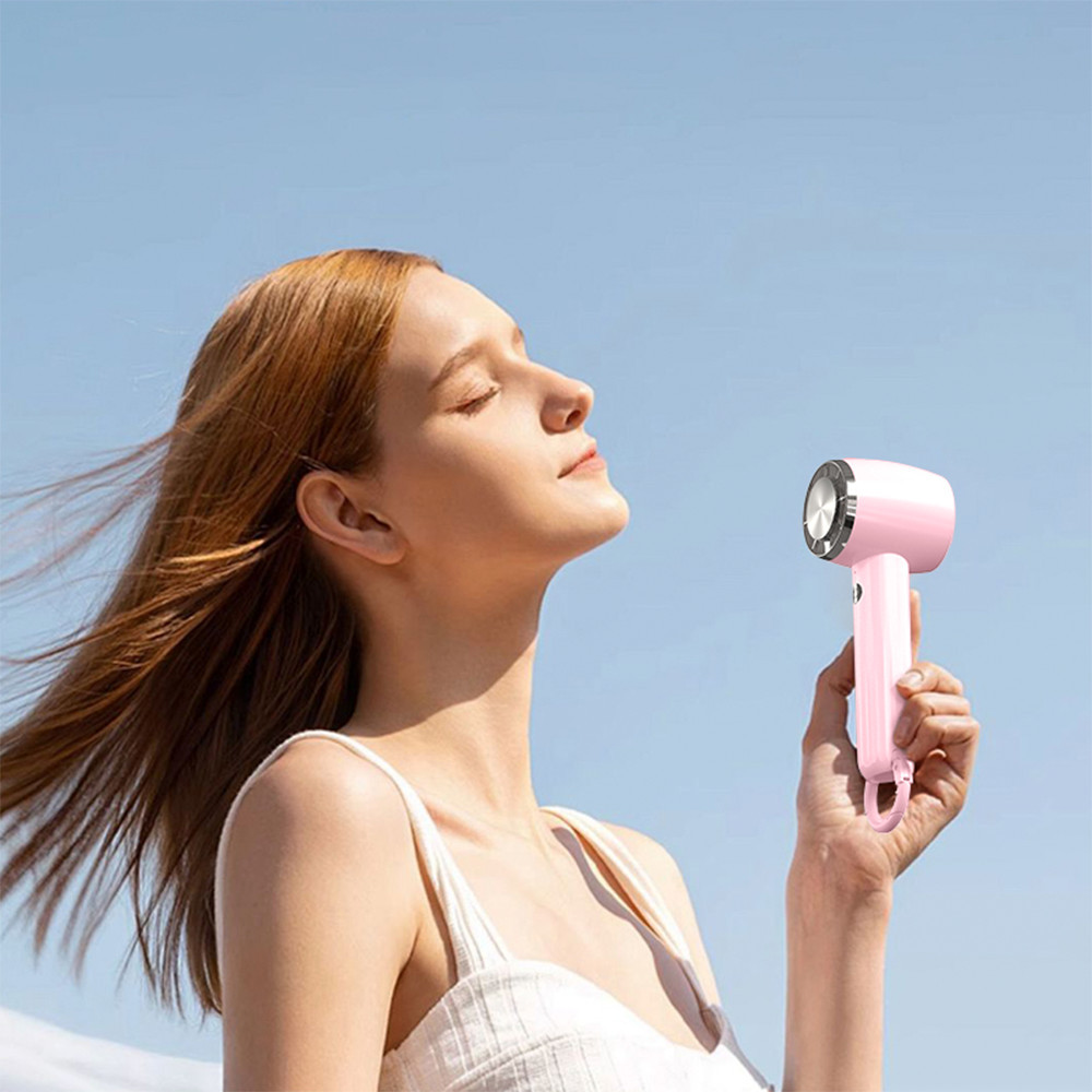 Modelul are un aspect modern, cu finisaj roz elegant, iar construcția combină plastic ABS și aluminiu pentru rezistență și un look premium. Funcționarea este silențioasă, iar designul rotorului este gândit pentru utilizare mai sigură în preajma copiilor.