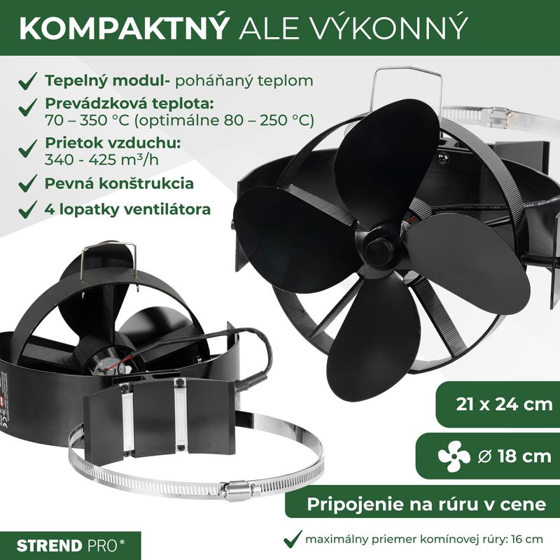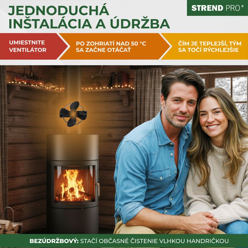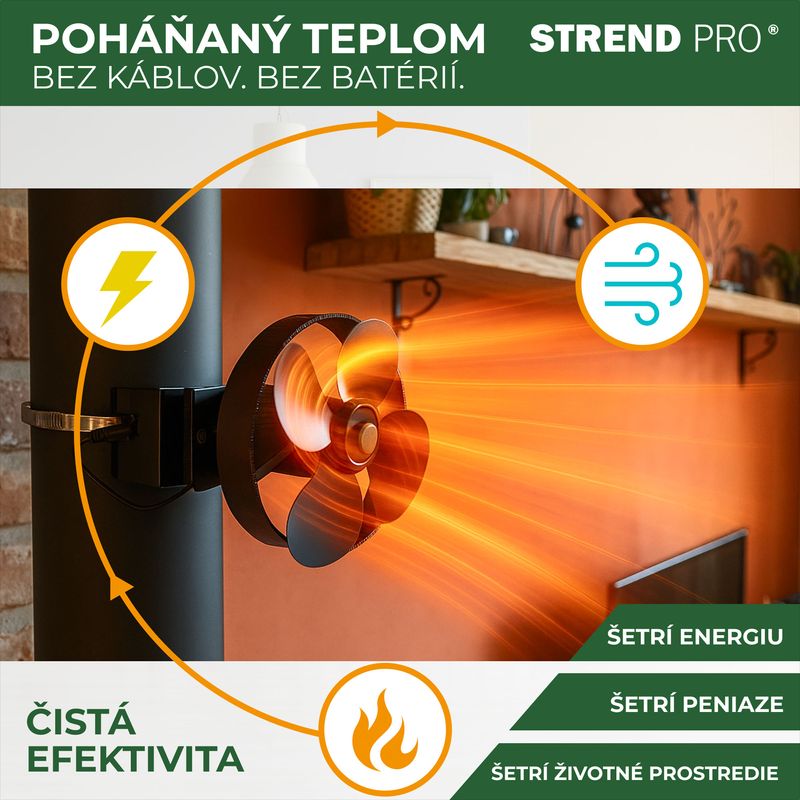 Ventilátor Strend Pro je ideálnym riešením pre efektívnejšie vykurovanie domácnosti pomocou krbu – bez elektriny, ticho a s vysokou účinnosťou.
