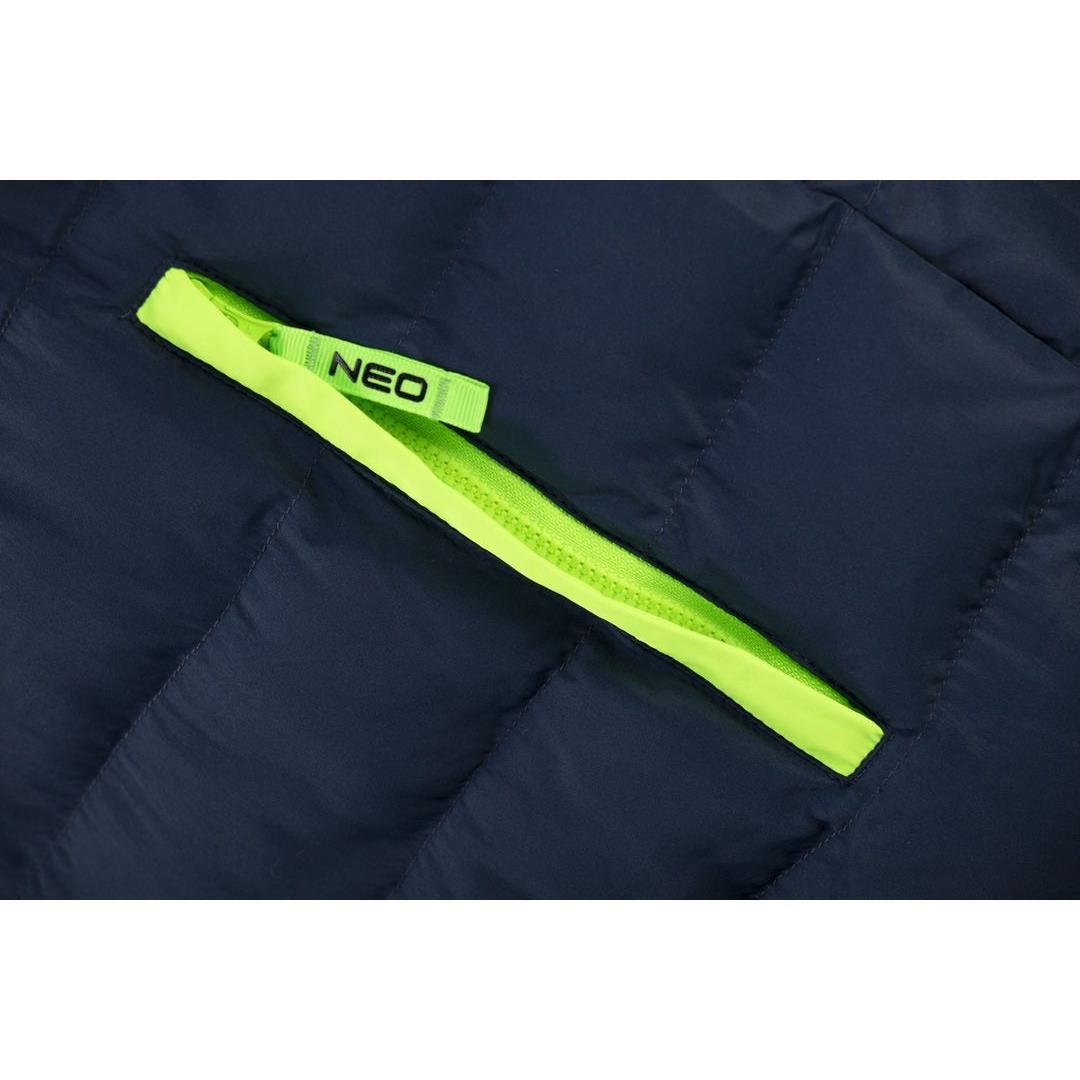 Vesta de lucru matlasata PREMIUM de la NEO are o combinatie moderna de albastru marin cu accente verzi.